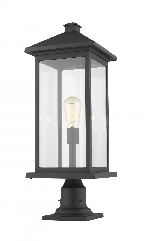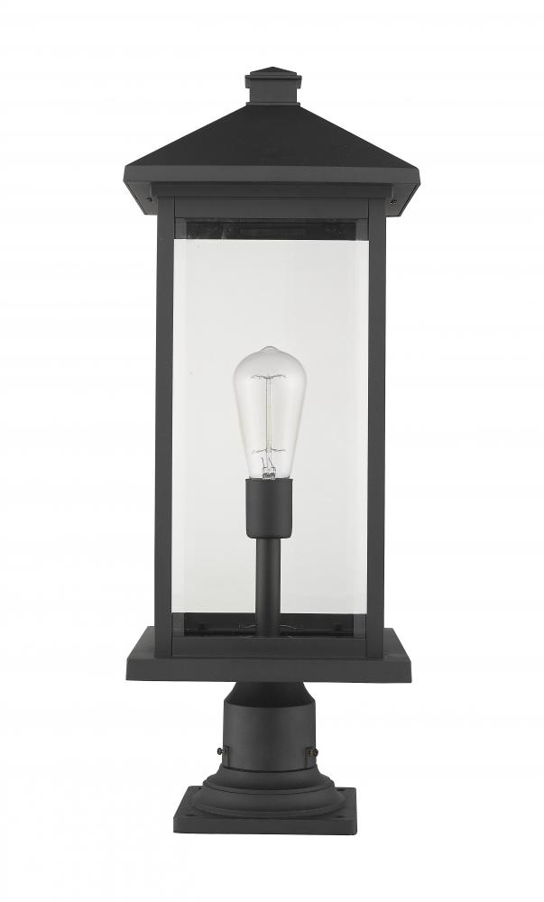 Rich hues marry streamlined style in the clean frame of this one-light lantern post. Clear beveled glass and a sleek black finish combine to create a beautiful visual.