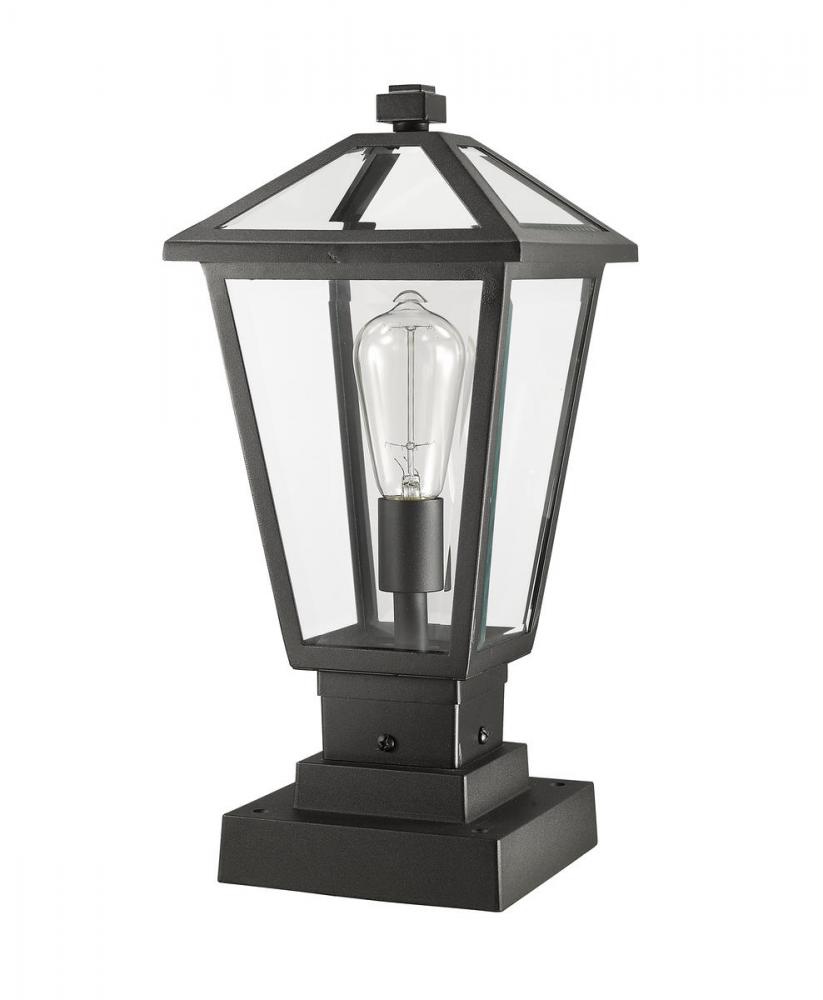 Illuminate an exterior front or back walkway with a classic fixture reflecting a charming village theme. Made from Midnight Black metal and clear beveled glass panels, this one-light outdoor pier mounted fixture delivers a charming upgrade with industrial-inspired attitude and a layered silhouette thats perfect for lower-level gardens and walkways.