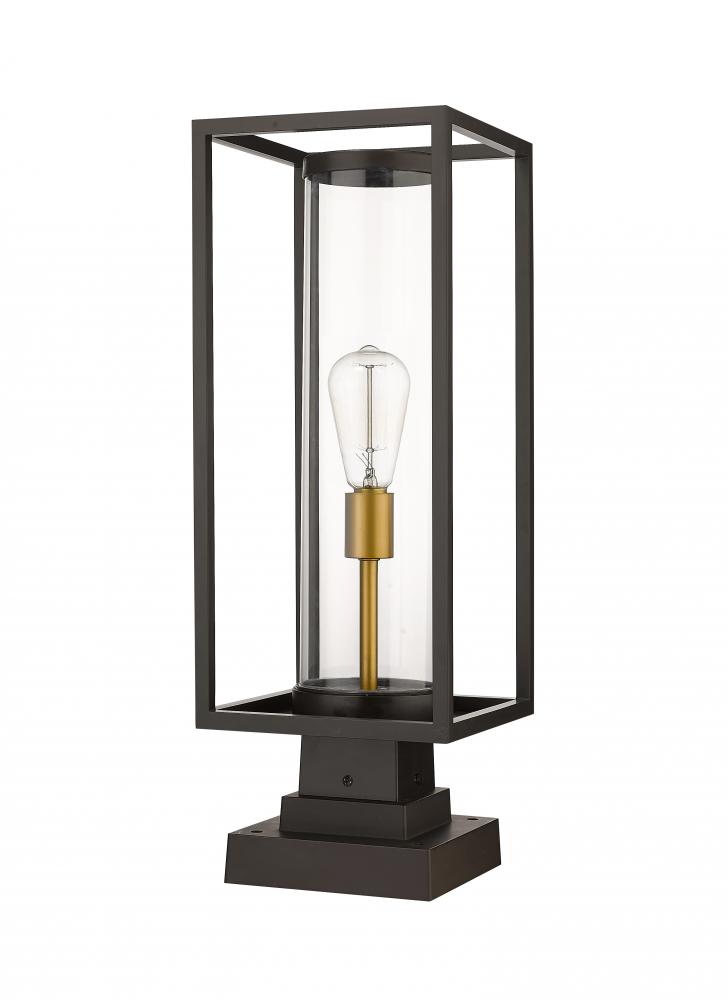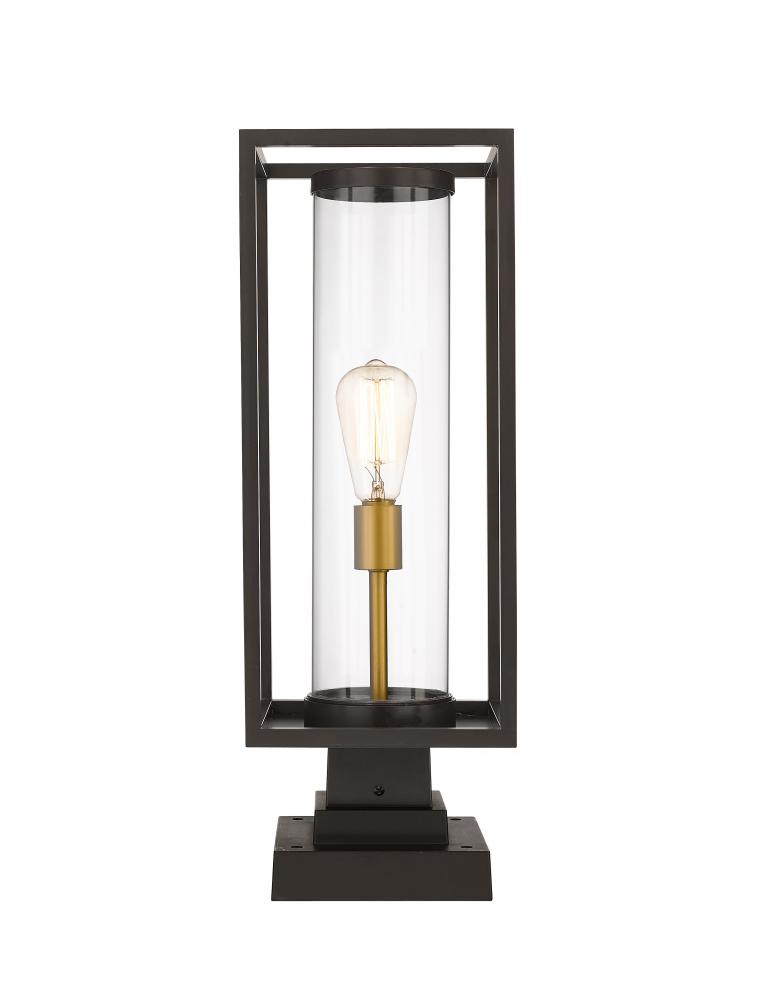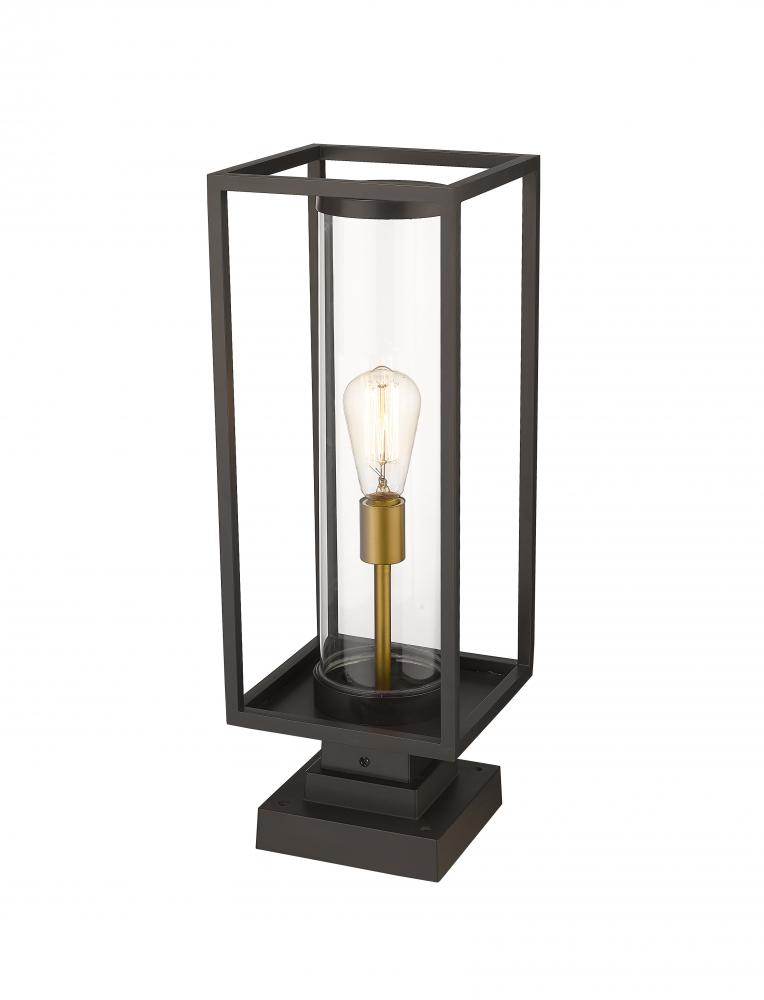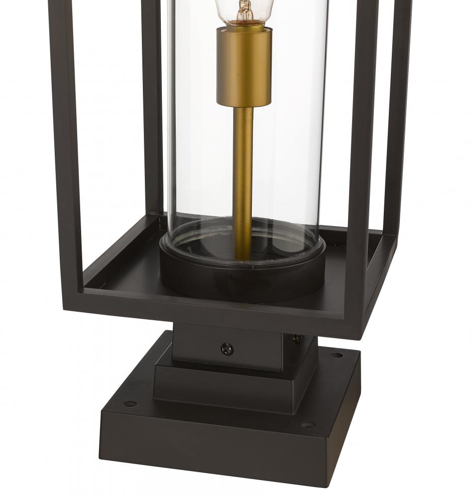 This contemporary outdoor pier mount lantern from the Dunbroch collection makes a lovely, modern addition to walkway columns or patio deck corners. Featuring an open-style rectangular aluminum lantern, this lighting post fixture features a single warm brass light fixture sheathed inside a clear cylindrical glass globe to allow light to spread evenly across the seating area or outdoor entertainment space. This outdoor light fixture also features a classic deep bronze finish to add a timeless, traditional touch.