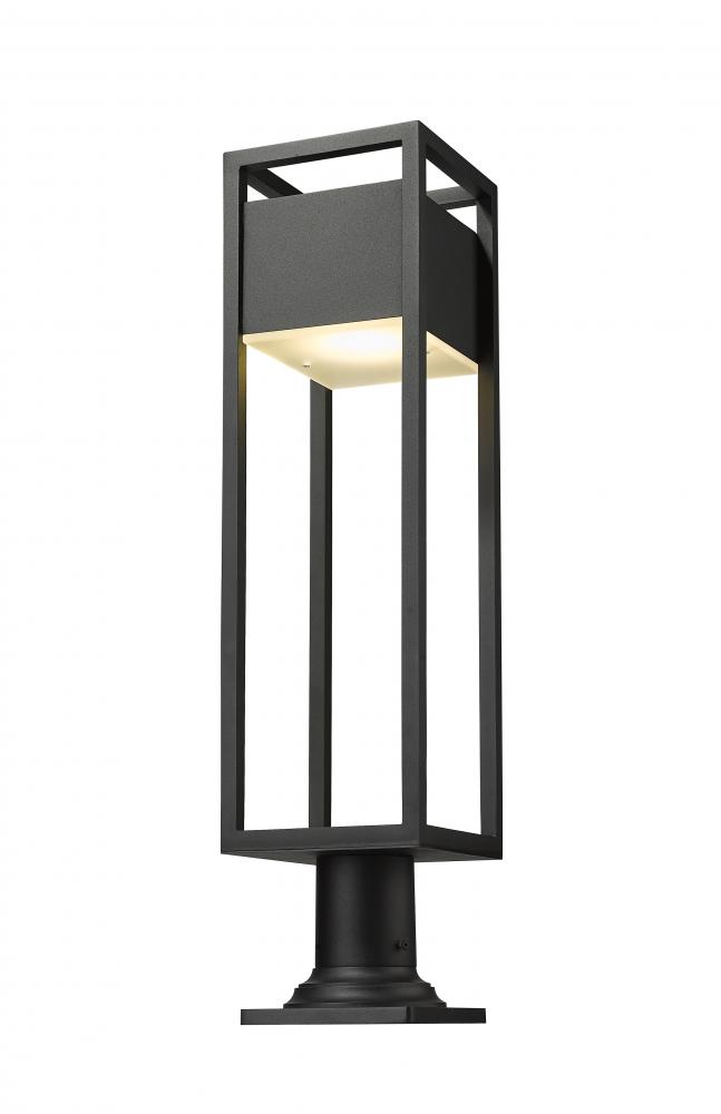 From the Barwick collection comes this contemporary outdoor pier mounted fixture, perfect for attaching to walkway columns and deck corners to illuminate the surrounding entertainment areas. With an open rectangular aluminum cage-like silhouette in a deep black finish, this mounted light fixture complements numerous existing building facade colors and materials. Its elegant and striking design also features an etched glass plate that shields an energy-efficient LED-integrated lamp, diffusing the light to create a natural, comforting glow.