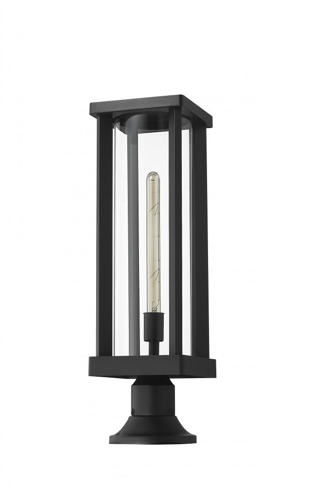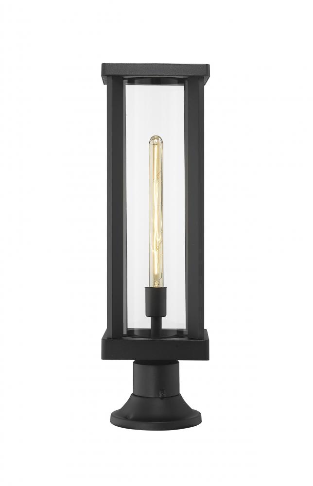Part of the Glenwood outdoor lighting collection, this modern pier mounted lighting fixture is can be mounted to walkway columns and deck corners to illuminate the surrounding space. With a tube-like clear glass globe nestled by an airy and open aluminum frame, this lantern casts a bright glow for entertaining parties and even late night chats. A handsome, deep black finish also complements a homes existing architectural elements and color palette.