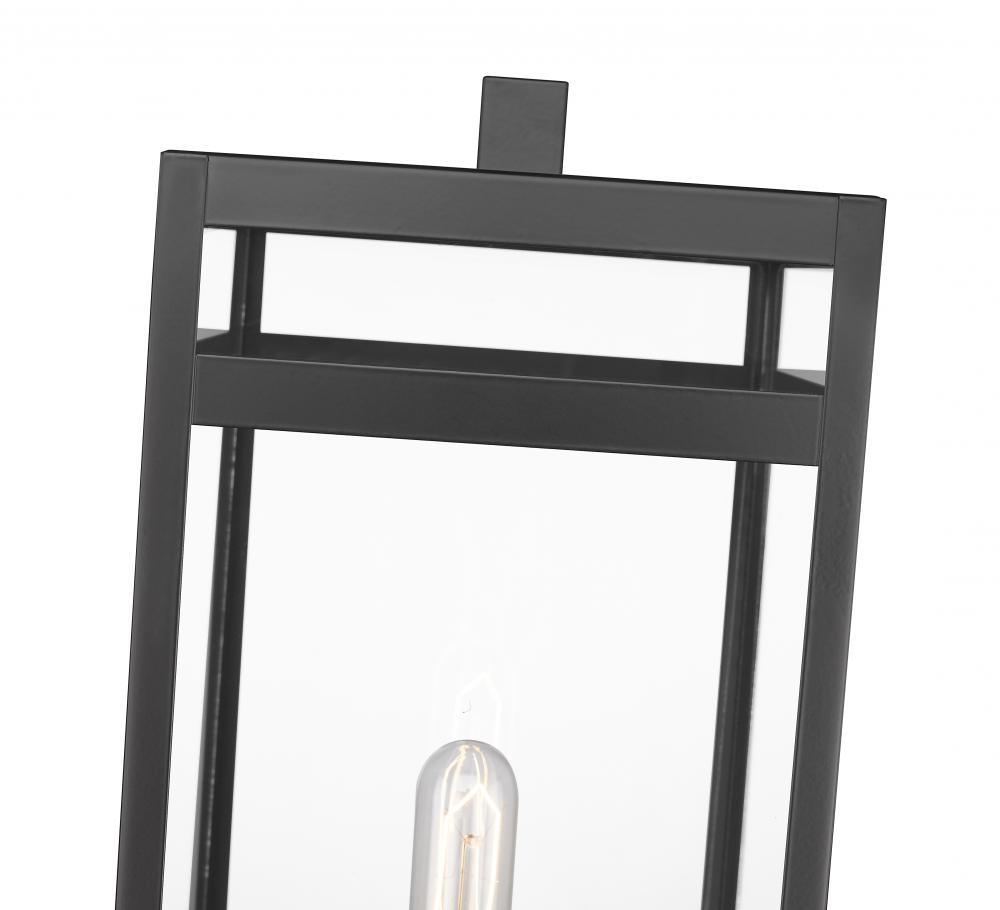Bring an industrial vibe to your patio or porch with this one-light outdoor pier mounted fixture made from steel. It features a versatile black finish and a crisp, clear glass shade.