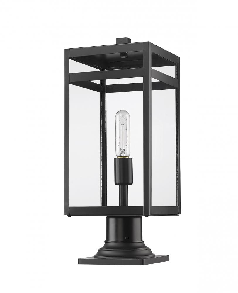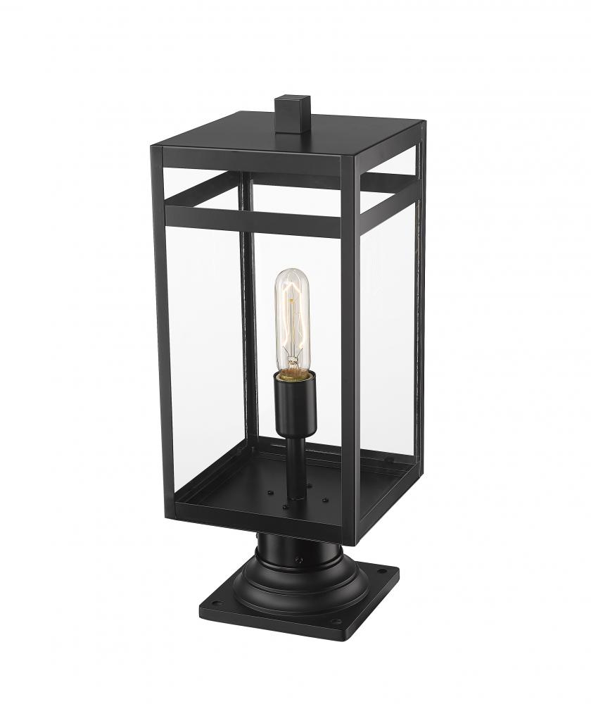 Include an industrial light source on your patio or porch with this one-light outdoor pier mounted fixture made from steel. It features a versatile black finish and a crisp, clear glass shade.