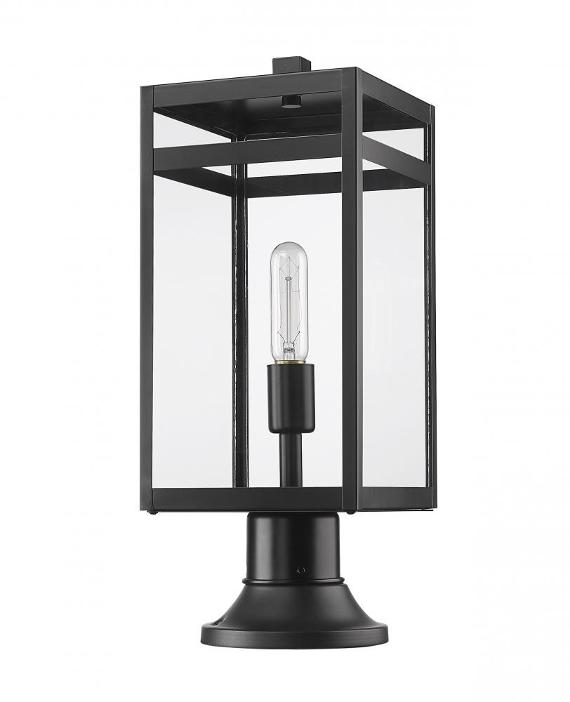 Incorporate an industrial light source on your patio or porch with this one-light outdoor pier mounted fixture made from steel. It features a versatile black finish and a crisp, clear glass shade.