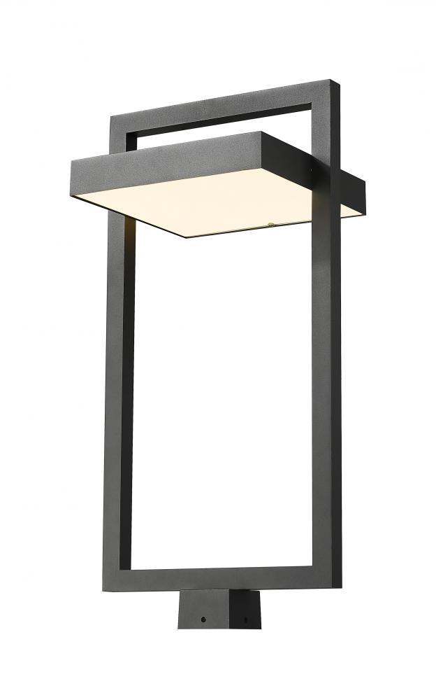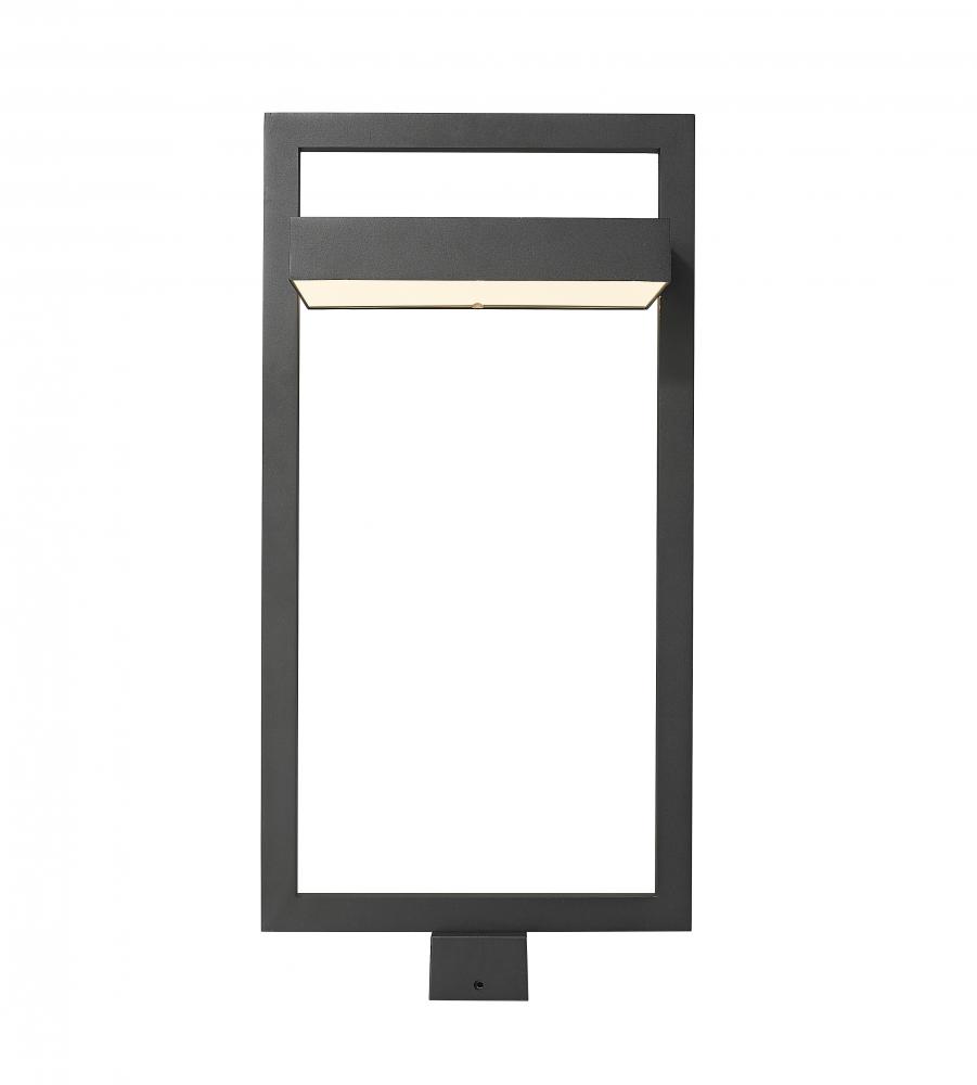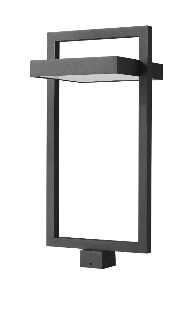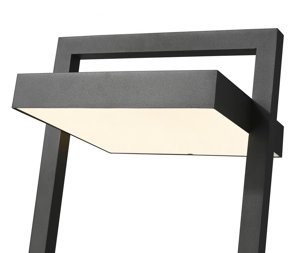 Bring a bold style aesthetic when you illuminate your contemporary patio, deck or garden area. This one-light outdoor post mount fixture has an angular bold black finish aluminum frame. Its sand blast finish white glass shade uses LED-integrated technology to provide a strong, energy-efficient glow to light up evenings outdoors.