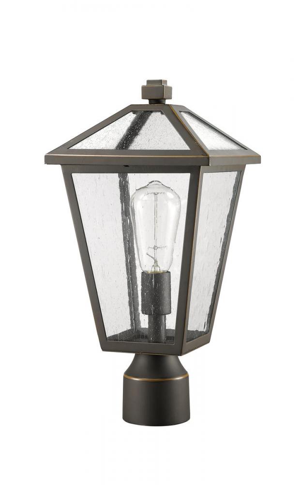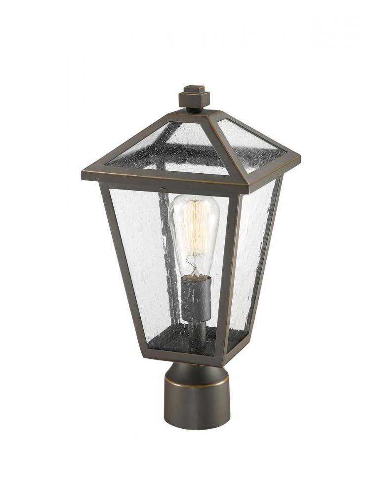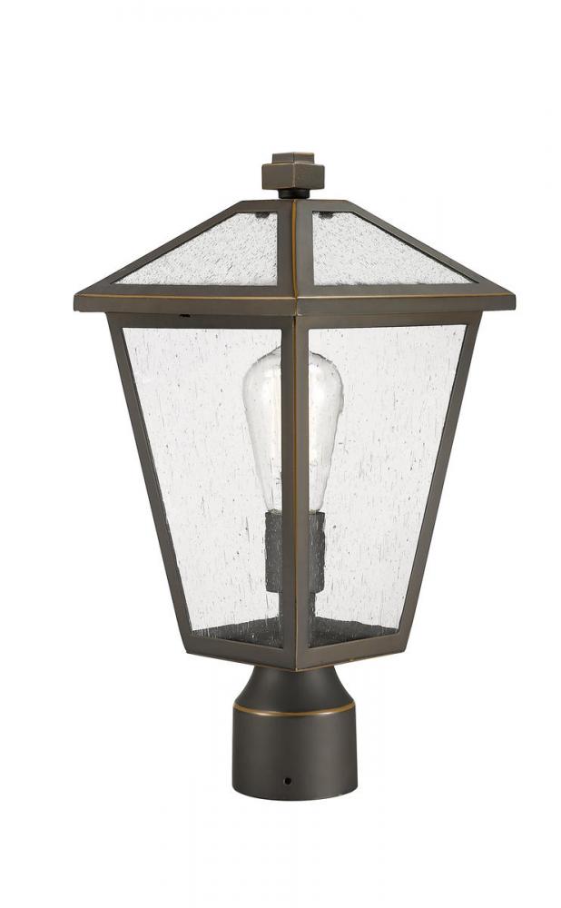 Illuminate an exterior front or back walkway with a classic fixture reflecting a charming village theme. Made from Rubbed Bronze metal and seedy glass panels, this one-light outdoor post mount fixture delivers a charming upgrade with industrial-inspired attitude.