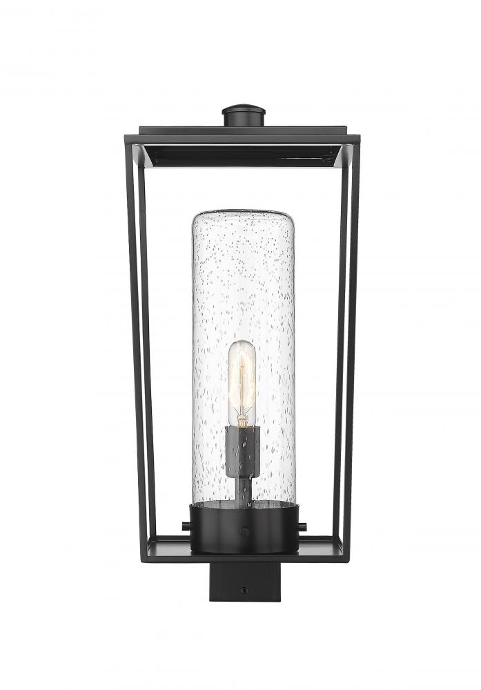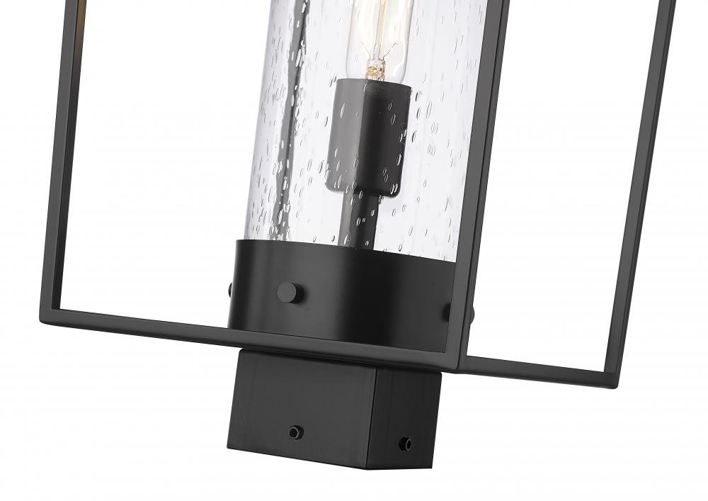 The Sheridan one-light outdoor post mount fixture provides an exceptional update to an existing post in an exterior space. This fixture delivers a classic lantern silhouette with vintage and nautical charm, featuring a black finish aluminum & steel open frame. A seedy glass cylinder shade infuses a romantic vibe to soften the overall aesthetic.