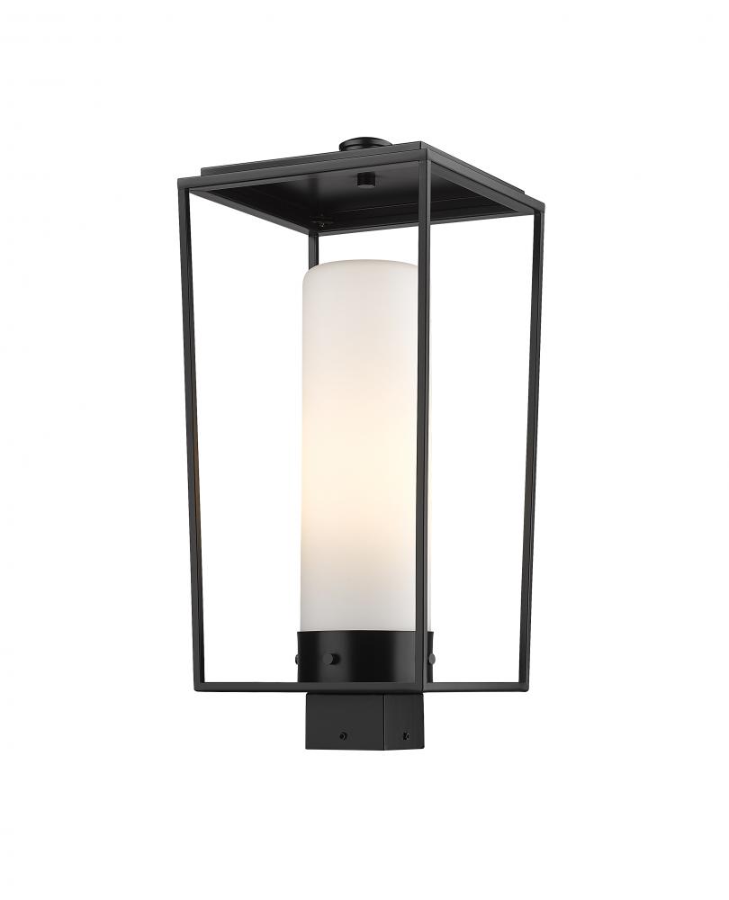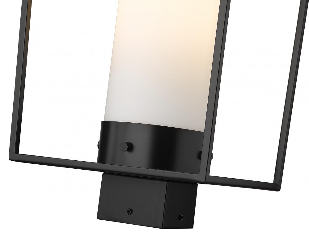 Top an existing post with the Sheridan one-light outdoor post mount fixture and revive the classic look of chic exterior lighting. This fixture features an open boxy lantern-style frame reminiscent of village fare. Made of black finish steel, it shelters a sleek white opal glass shade.