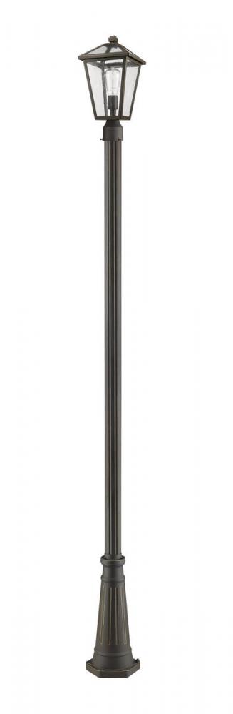Softly illuminate an exterior front or back walkway with a classic fixture reflecting a charming village theme. Made from Rubbed Bronze metal and seedy glass panels, this one-light outdoor post mounted fixture delivers a charming upgrade with detailed design work and industrial-inspired attitude.