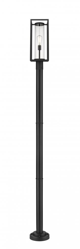Cast a glow along a footpath with this modern outdoor post mounted fixture from the Dunbroch collection. Featuring a tall and stately post topped with an open, rectangular aluminum lantern, this outdoor fixture casts plenty of lighting across your patio or veranda entertainment areas. And with a dark black finish as well as a single light sheathed within a transparent, tube-like glass globe, this post fixture lends a contemporary style to any exterior space.