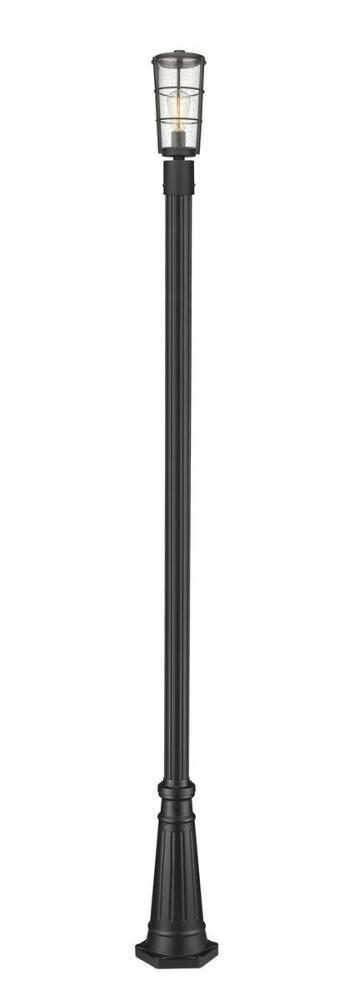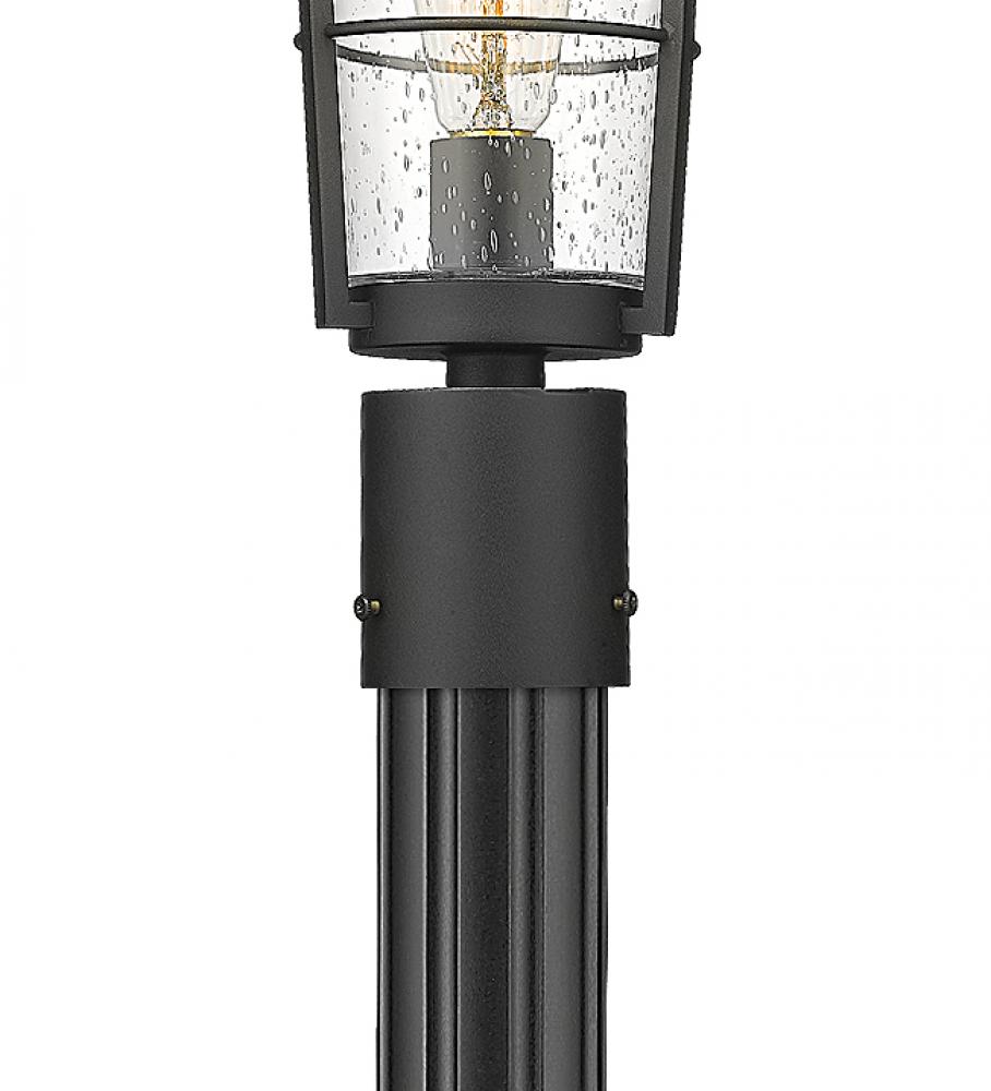 Classy and elegant, this one-light outdoor post mounted fixture shows off a charming village theme with a hint of industrial style. This fixture and post from the Helix collection delivers a narrow frame with a lantern vibe, showcasing sleek hand-worked black finish aluminum. A clear seedy glass shade adds romantic inspiration, as a long, slender post features a subtly decorative base.