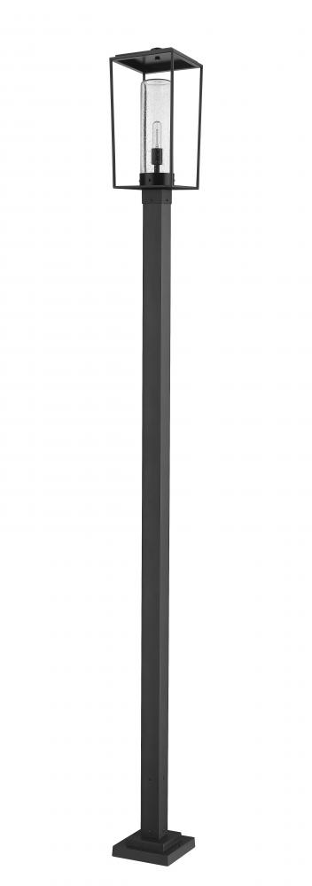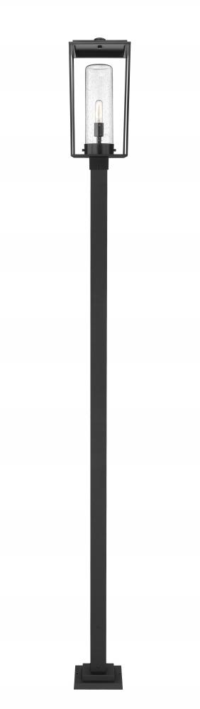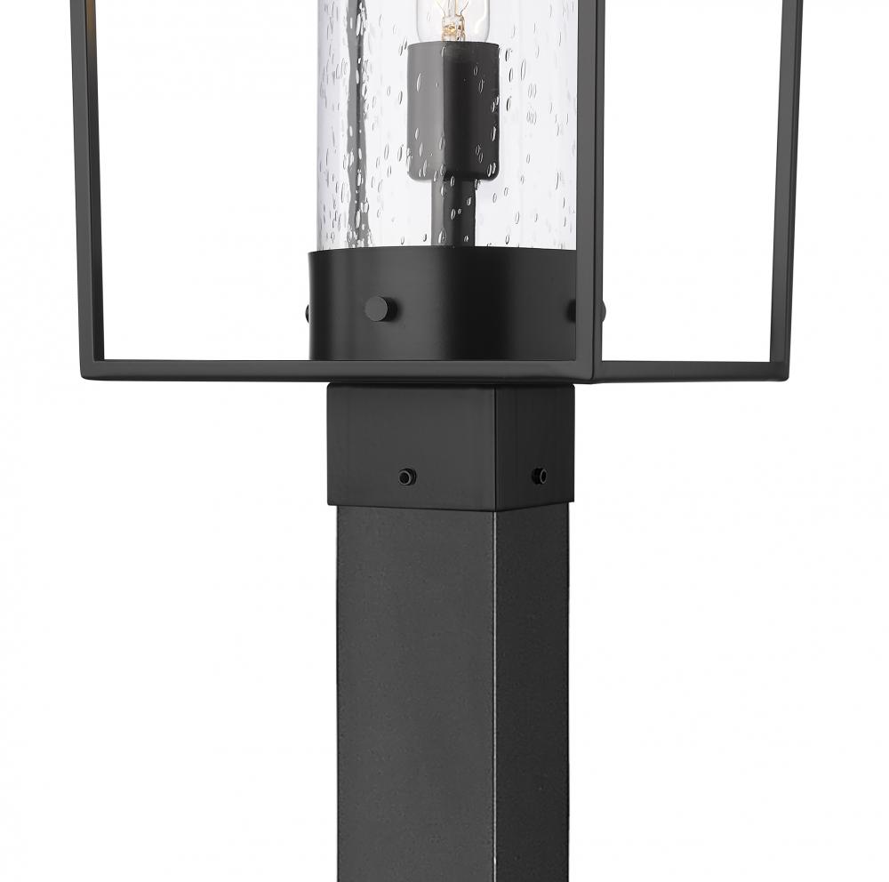 Attention to classic style enhances the Sheridan single-light outdoor post mounted fixture, bringing a village-inspired motif and a thick post design. Crafted of black finish aluminum & steel, this frame and post combo offers a romantic throwback to nautical industrial eras. A seedy glass cylinder shades ratchets up the elegance of this stylish light that improves the overall look of exterior spaces.
