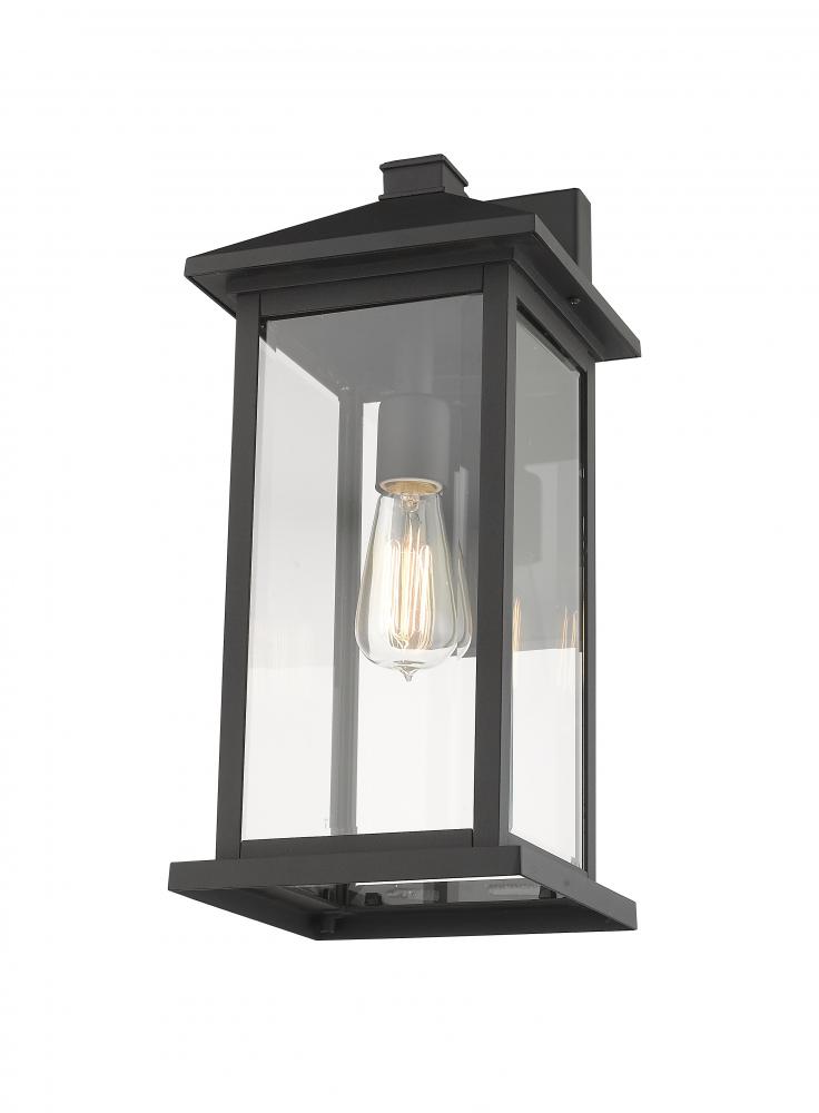 Sleekly designed, this one-light wall lantern is full of sophisticated style. Rich black elevates the clean lines of the silhouette with classic depth while clear beveled glass creates a bright aura.