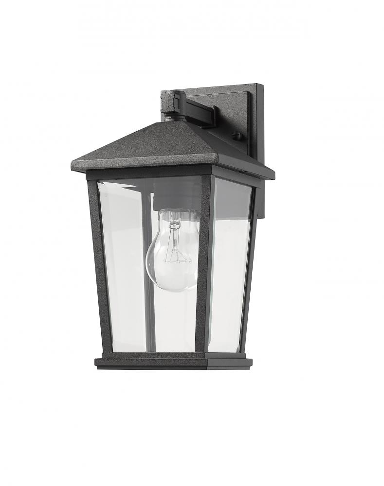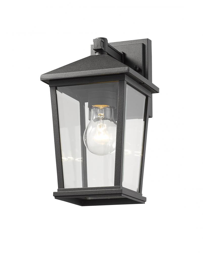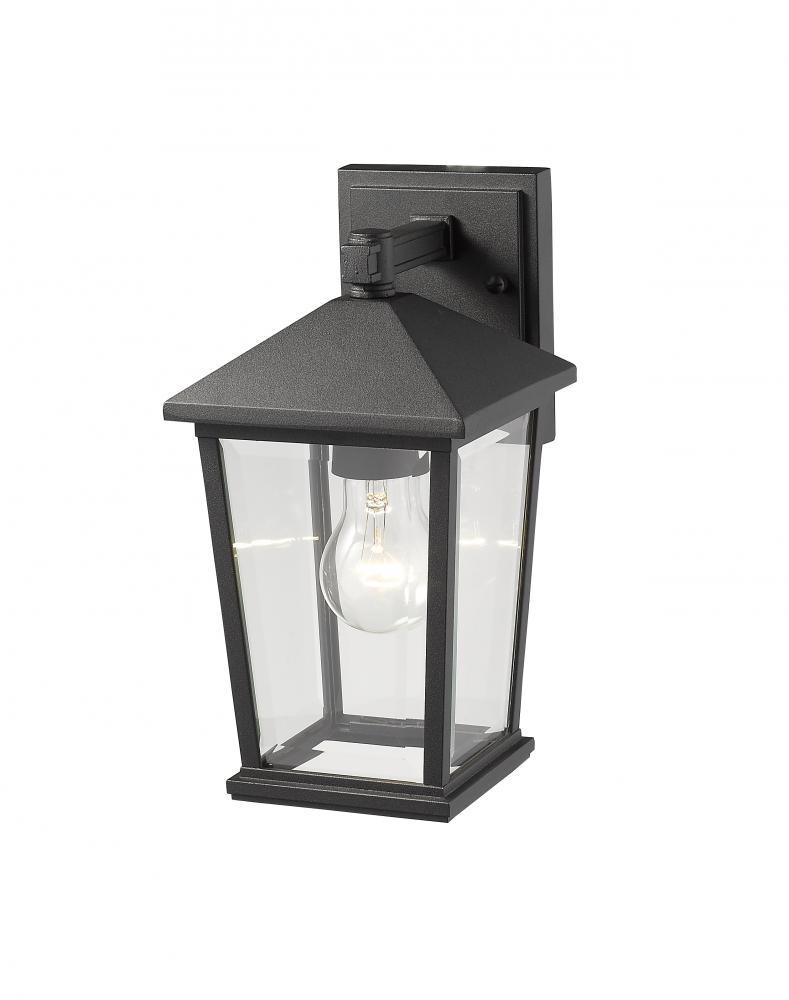 Make sure exterior spaces are well lit as you add a sophisticated, artful vibe to a structure wall. With a bold black finish, this outdoor wall lantern offers a geometric silhouette with a charming village theme.