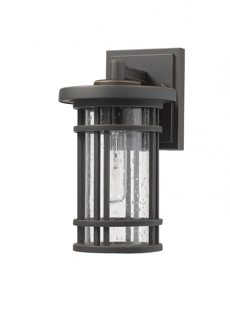 Clean structure meets a classic hue in this outdoor wall light. Rubbed bronze over straight lines creates a textured glow.
