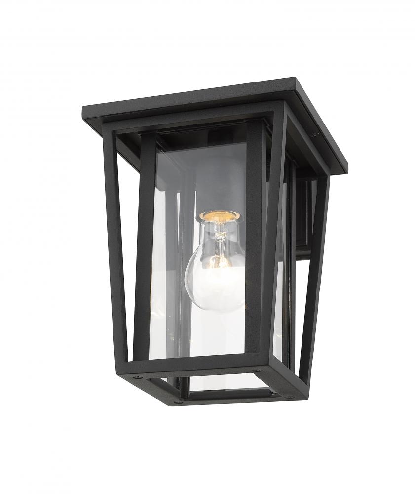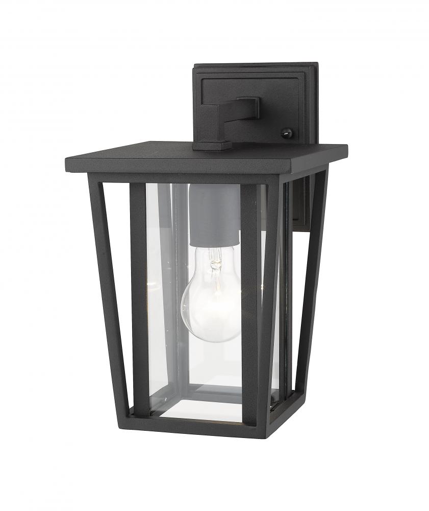 On a structure or gazebo space, this outdoor wall lantern creates an eye-catching geometric attitude. Cool linear design on its black finish frame blends beautifully with an interior bulb hosted in a clear glass shade.