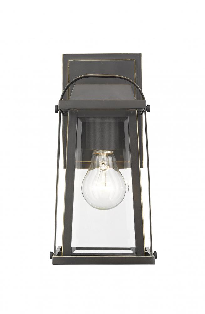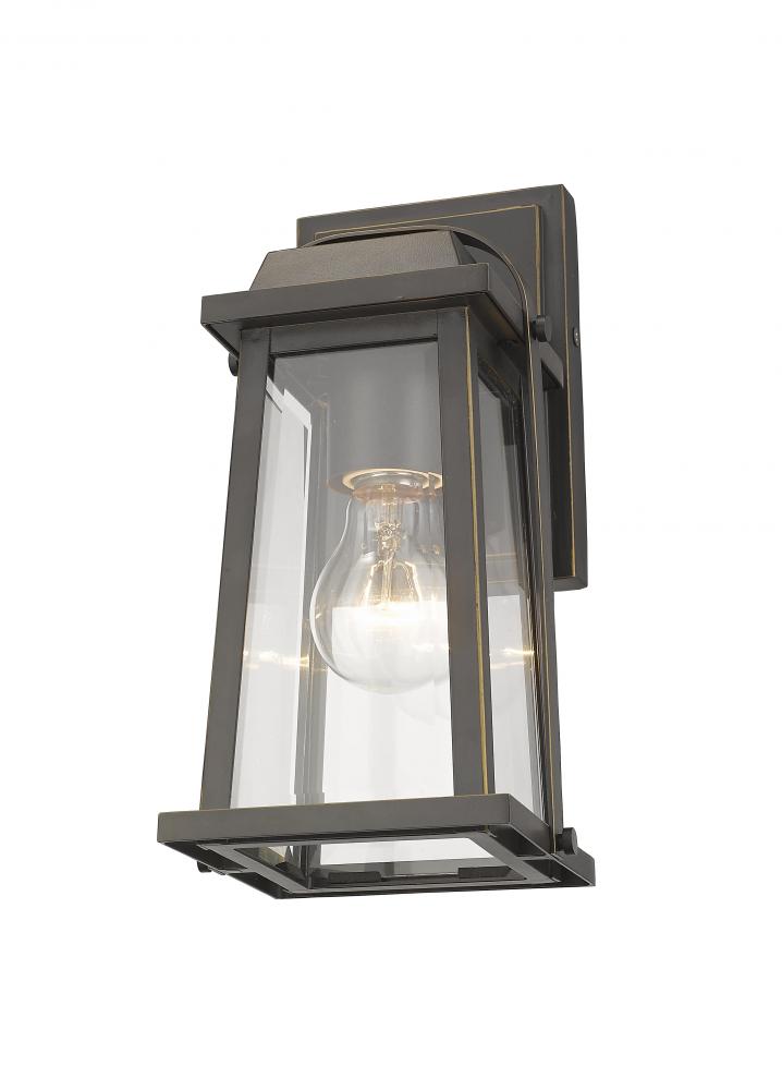 An oil rubbed bronze finish softens this classic lantern wall sconce to create an inviting addition to transitional or contemporary decor. Clear beveled glass panels ensure plentiful illumination to ensure an inviting aura.