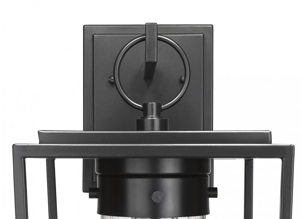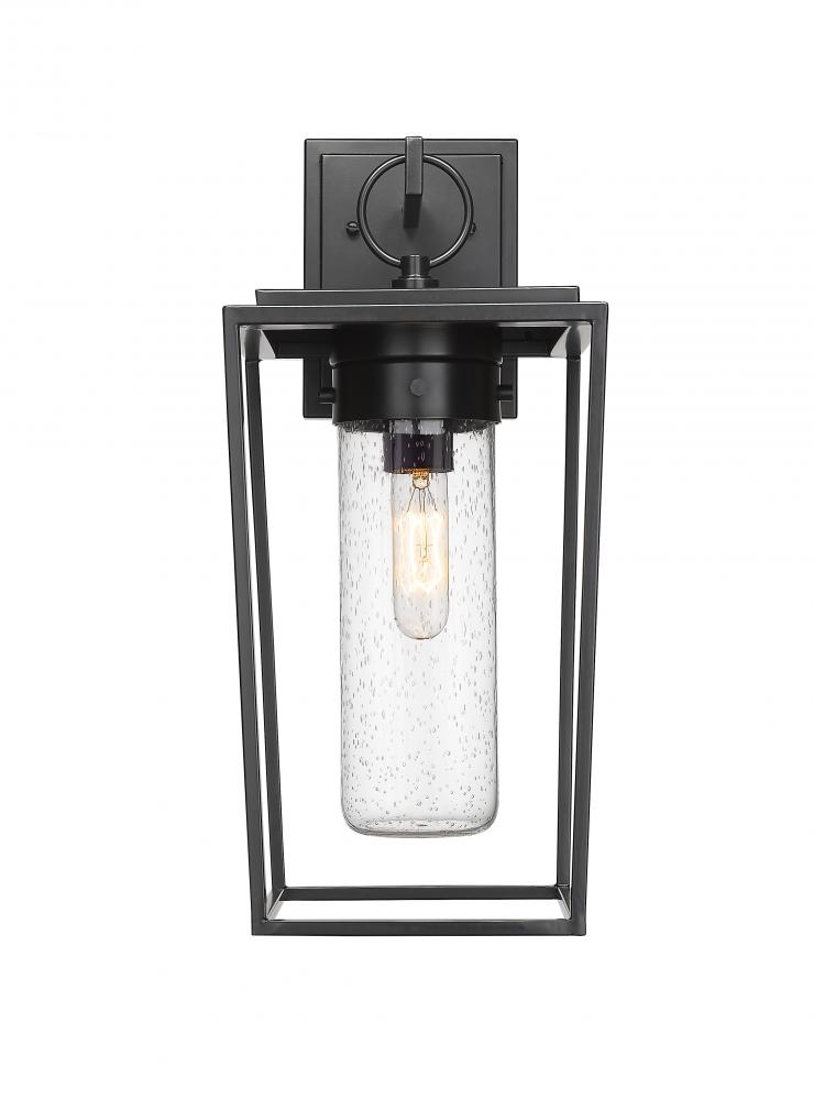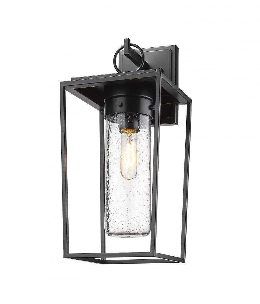 Changing up a standard look of conventional lighting, the Sheridan outdoor wall sconce delivers an impressive, sophisticated motif that reframes modern or transitional al fresco entertaining. A romantic seedy glass cylinder shade is sheltered in a minimalist geometric frame with a boxy frame crafted of black finish aluminum & steel. This tasteful outdoor fixture is perfect as a doorside wall light or a source of lighting attached to a separate structure.