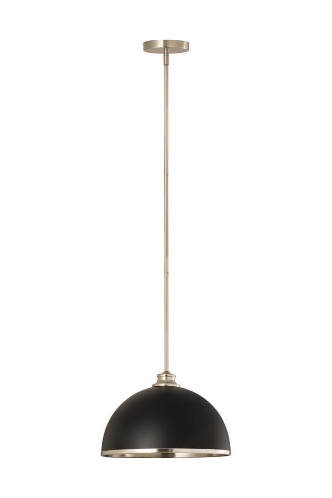 Chic, modern vibes add a stunning look to a custom kitchen, living space, or bedroom with this domed metal one-light pendant. A domed shade crafted of matte black finish stainless steel is trimmed in brushed nickel finish metal with a brushed nickel finish down rod and canopy. This updated pendant is suitable for a variety of d?cor schemes including farmhouse, modern industrial, and urban modern.