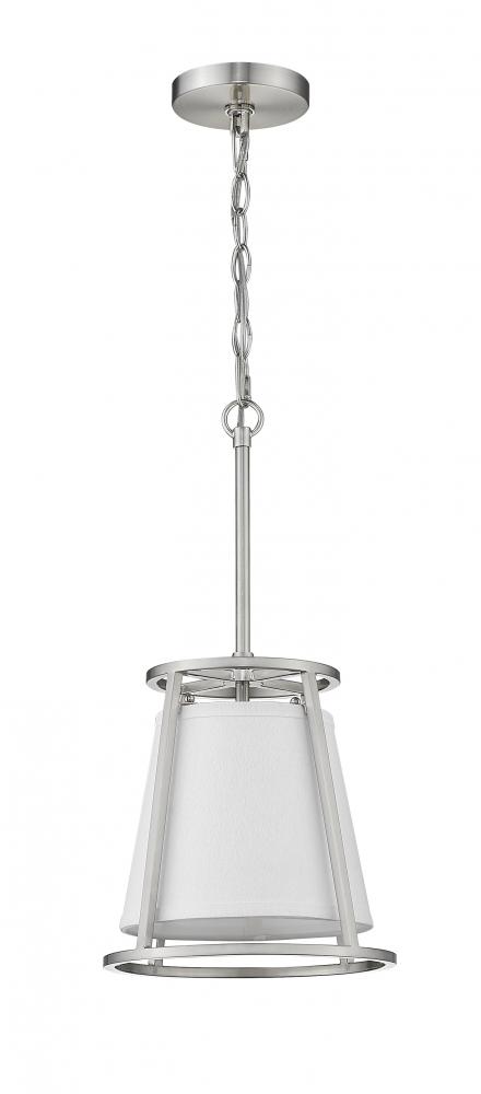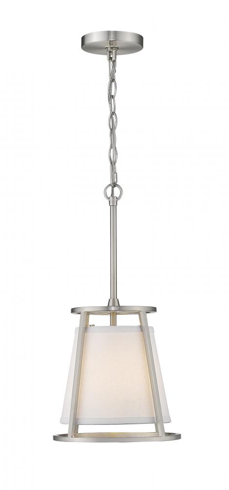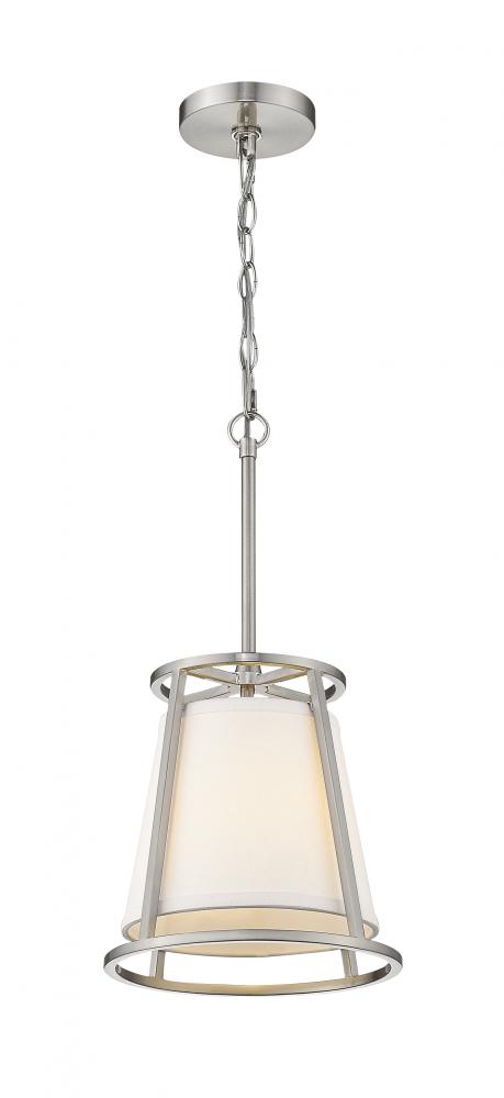 Illuminate your living space with the alluring glow of this elegant, single-light mini pendant. With a versatile design that works well in almost any room, this sophisticated fixture blends a brushed nickel frame with a soft, white shade for beautiful ambiance.