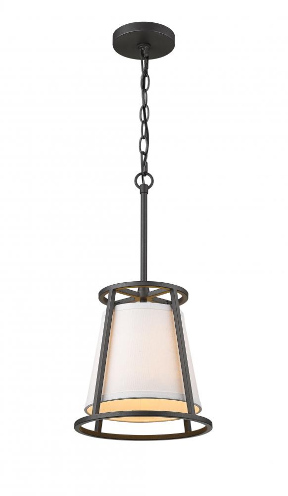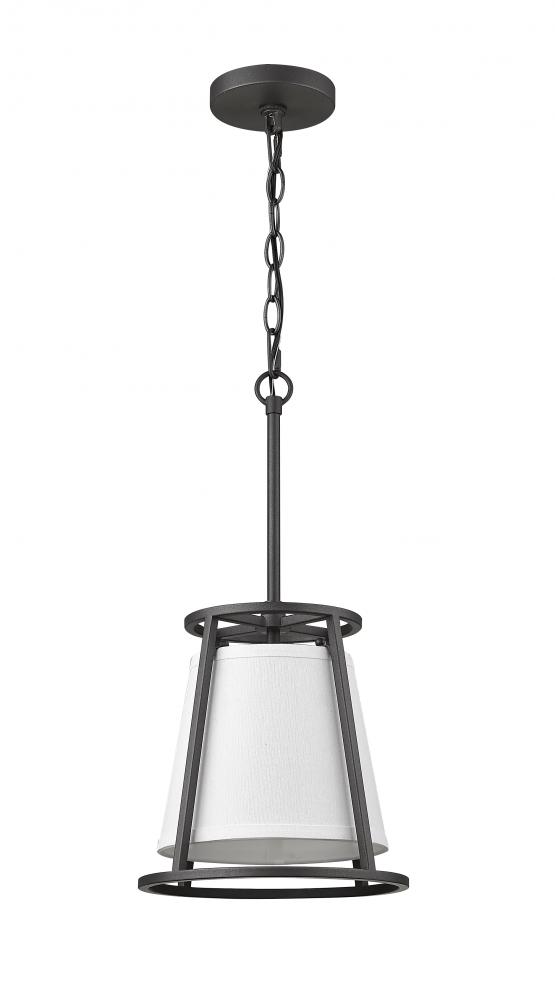 Illuminate your living space with the alluring glow of this elegant, single-light mini pendant. With a versatile design that works well in almost any room, this sophisticated fixture blends an iron ore finish frame with a soft, white shade for beautiful ambiance.