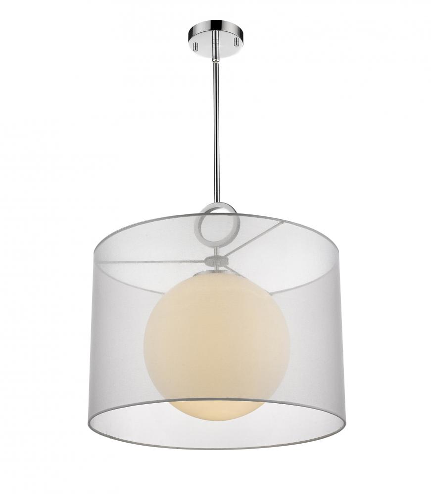 A bold, white fabric shade lends a touch of modern flair to this eye-catching, single-light pendant. From bedrooms to dining rooms to living rooms and more, this gorgeous, chrome fixture will elevate your living space to new heights of style.