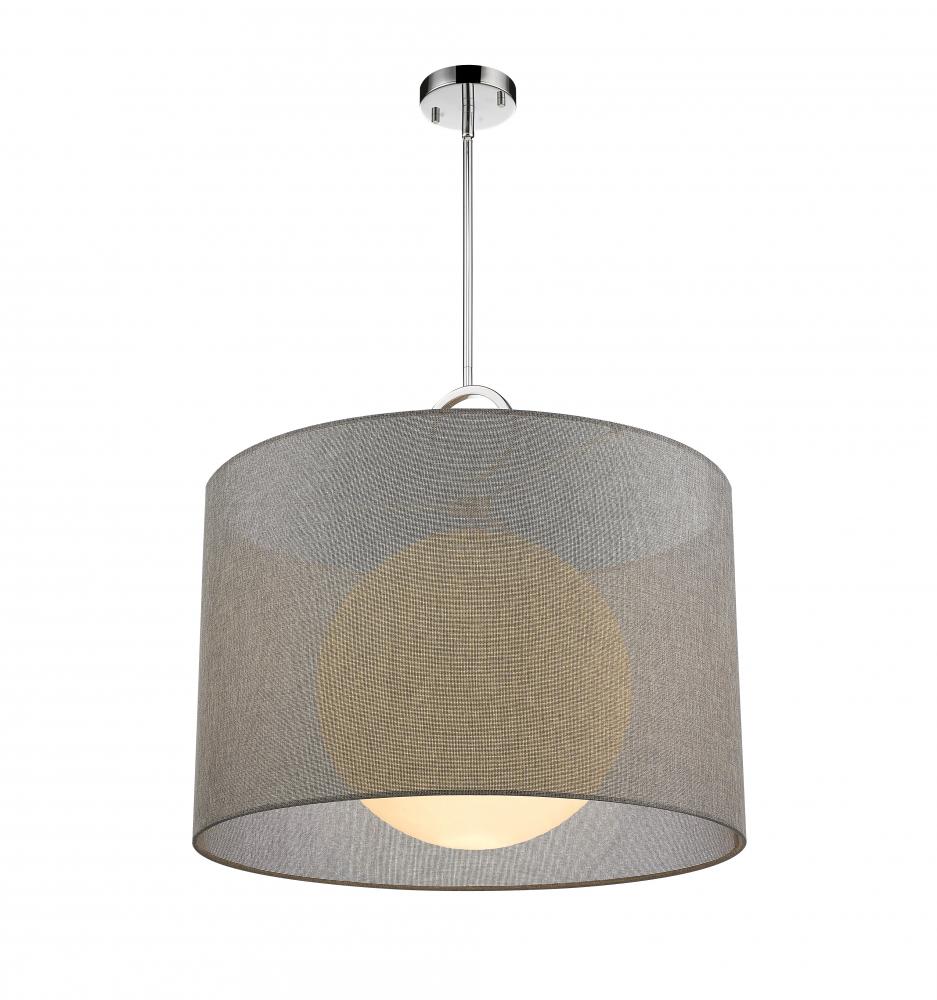 With a sleek, chrome frame and a modern aesthetic, this single-light pendant will elevate your decor to new heights of style. A bold, gray fabric shade lends eye-catching allure to this exquisite piece.