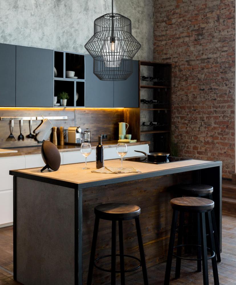 Showcase charm and personality in the kitchen with a pendant light in a matte black finish. A bird cage silhouette brings an alluring and airy display with steel construction.