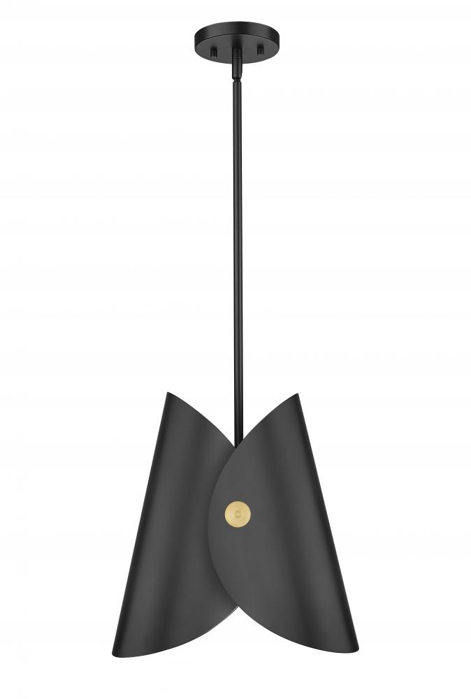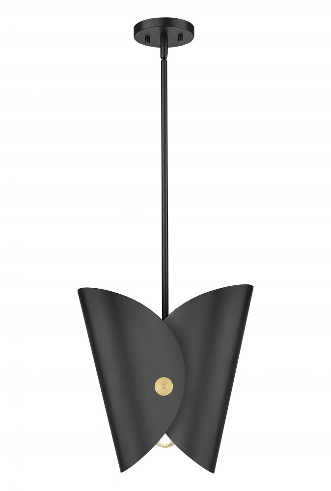 Compact in silhouette but big on style, this modern one-light pendant sets the tone alone or in multiples to create a chic lighting installation. It features a wrapped metal collar shade with a decorative button, offering tailored elegance in kitchen, living area and beyond. With a matte black finish and gold interior accent, it delivers impeccable warmth and radiation.
