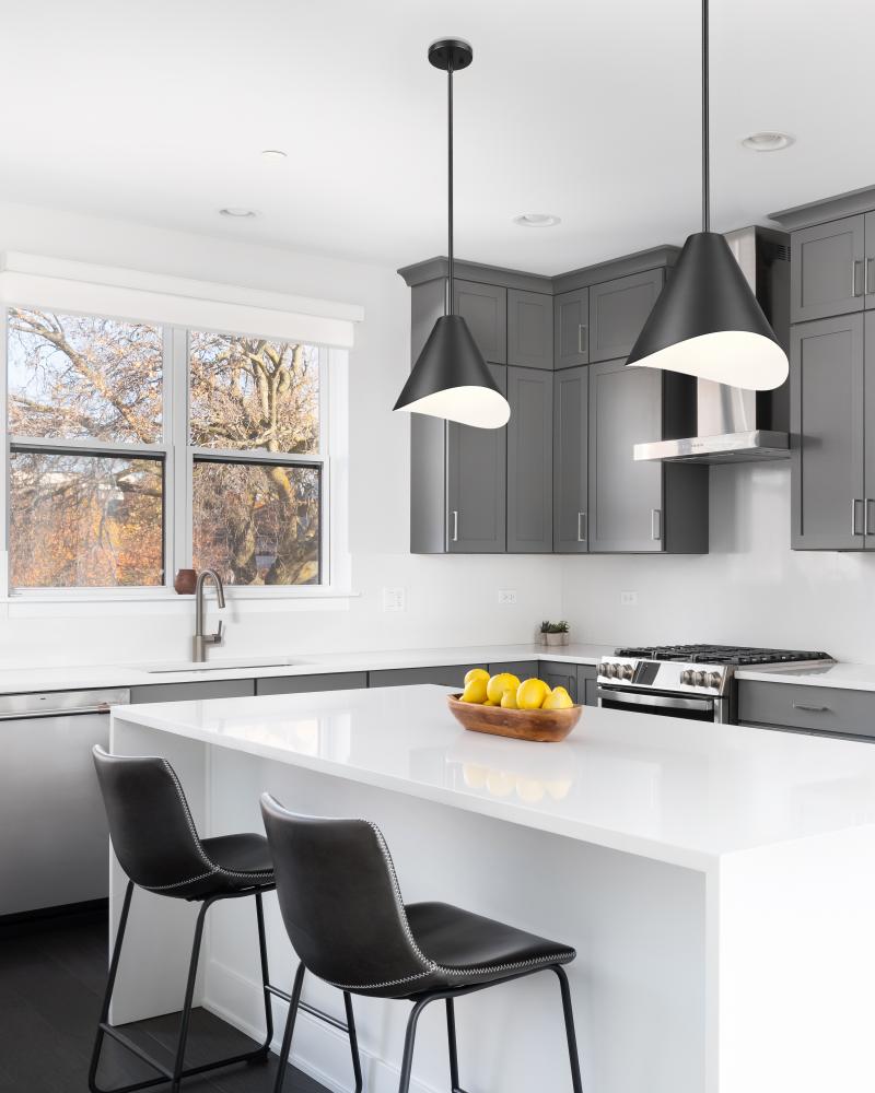 A flowing edge adds dimension and sculptural artistry to this modern one-light pendant. Beautiful over a kitchen island or in your living space, it features a matte black finish over steel construction, with a white interior on the shade to ensure bright radiance.