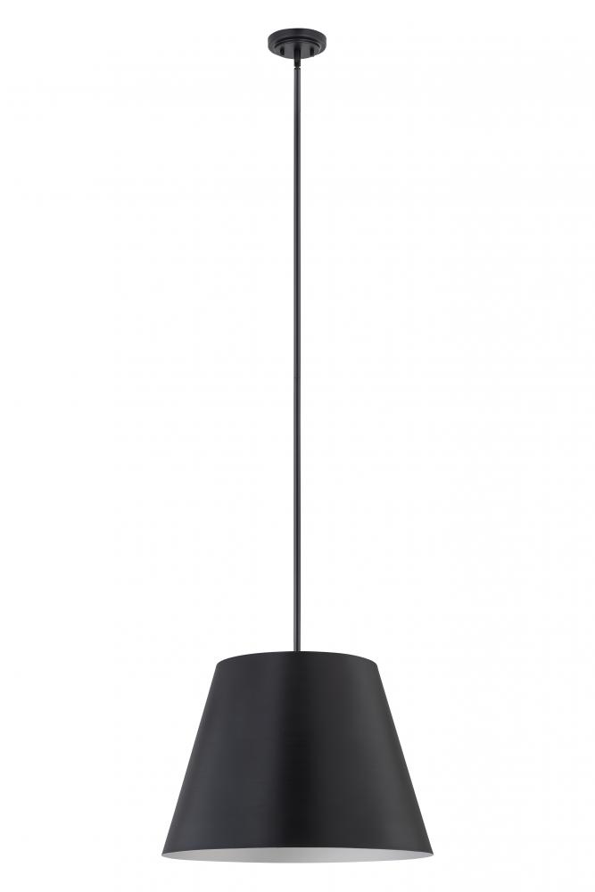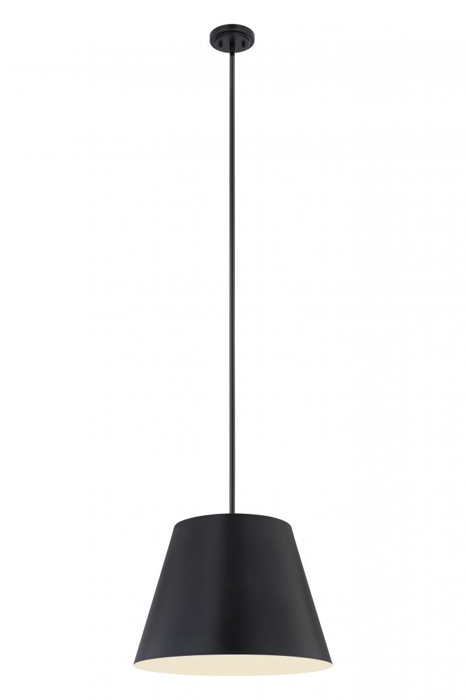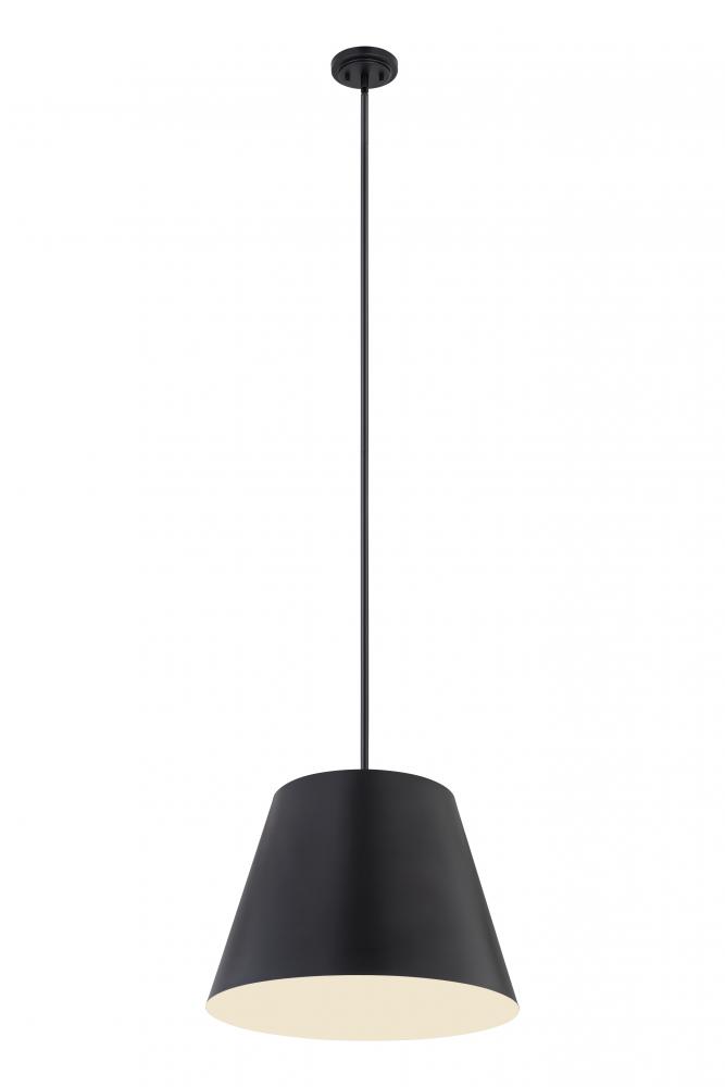 Bright, direct illumination radiates beautifully from a modern one-light pendant with a metal shade. The contemporary empire silhouette is exceptionally versatile as it offers a crisp matte black finish and a white interior for excellent lighting in any setting.