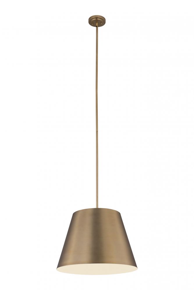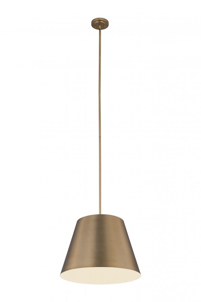 Bright, direct illumination radiates beautifully from a modern one-light pendant with a metal shade. The contemporary empire silhouette is exceptionally versatile as it offers a warm modern gold finish and a white interior for excellent lighting in any setting.