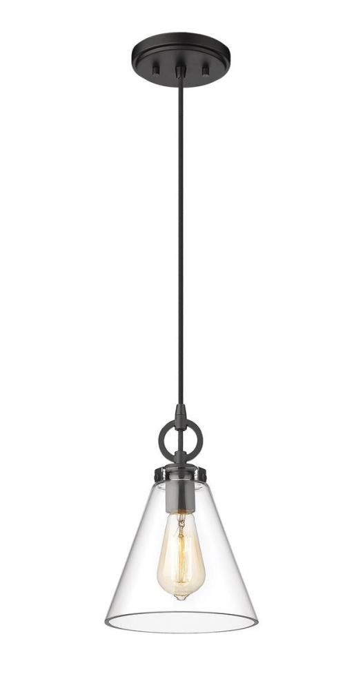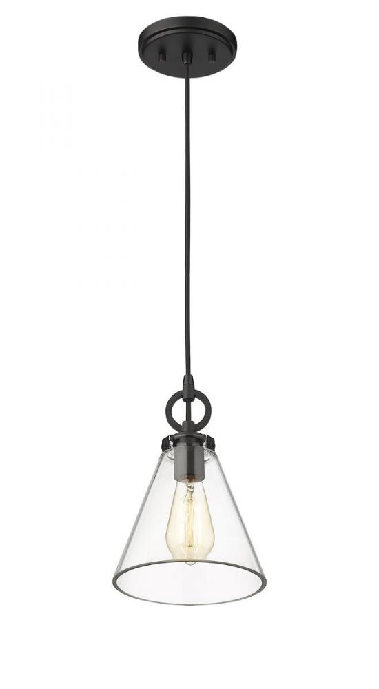Add a fresh, modern edge to transitional d?cor with this sleek, metal pendant light from the Harper collection. Showcasing a clear glass shade and a slim, steel frame in a deep, rich, matte black finish, this sophisticated fixture illuminates a room in effortlessly elegant style.
