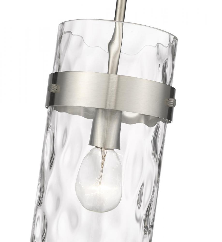 Hanging from your ceiling like a beautiful piece of art, this pendant light boasts a cylinder glass shade with a lovely rippled texture. Perfect for a hallway or kitchen, this light is crafted in steel with a brushed nickel finish and is sure to beautify your home with an elegant and sophisticated design.