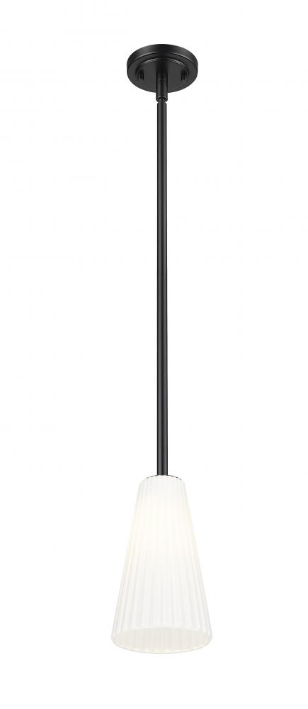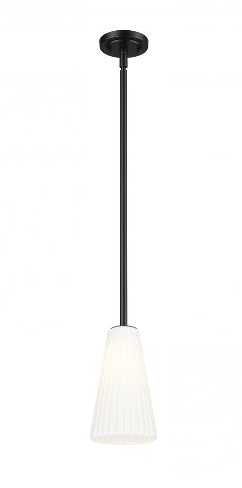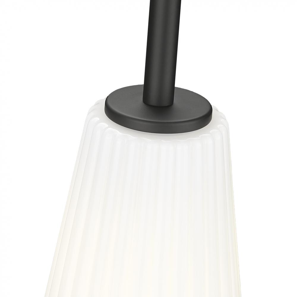 Alone or in series, this modern one-light pendant is a sophisticated choice for your contemporary home. A matte black finish canopy and stem complement an elongated frosted glass shade that showcases delicate fluting to create a sense of fluidity and movement in your kitchen, living area, or bedroom.