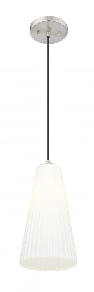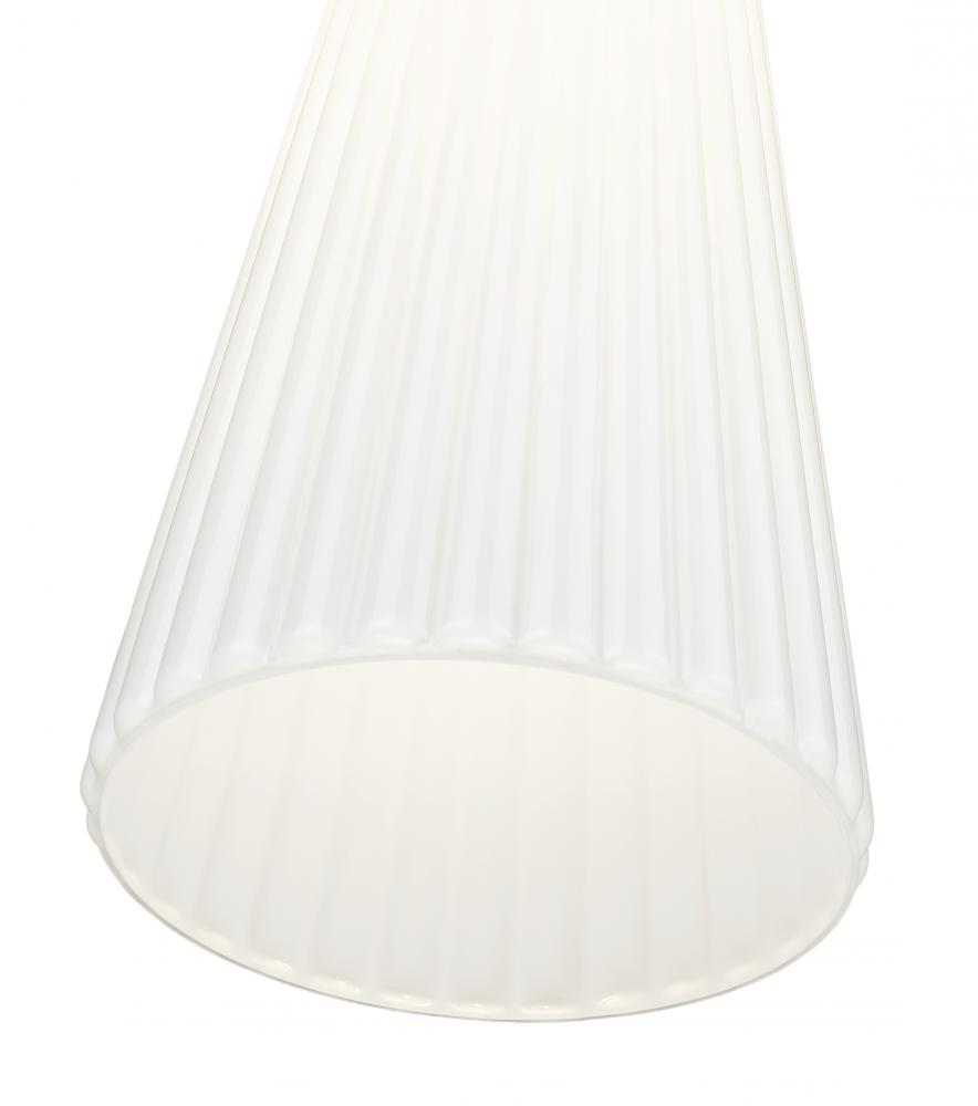 Fluted white glass creates a chic, elongated silhouette for this modern one-light pendant. From the Farrell collection, its a distinctive design with the understated flair that complements in virtually any refined space. Its soothing sophisticate is paired with a brushed nickel finish, offering a gleaming touch to the surrounding decor.