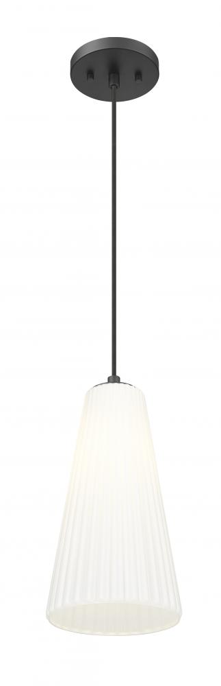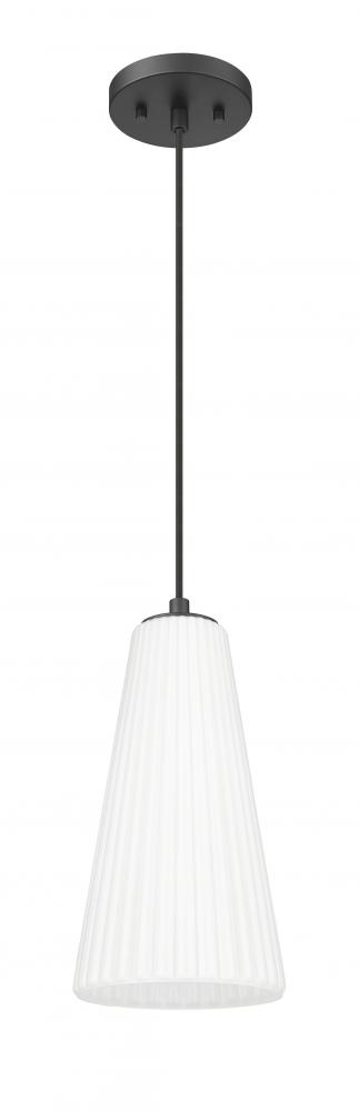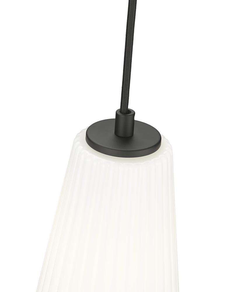 Frosted, fluted glass creates a chic sense of movement for a modern one-light pendant. Striking in its blend of simplicity and texture, this pendant is a stunning choice alone or in series over a larger space. Its matte black finish creates contrast while its flared shade is elegant and refined in any setting.