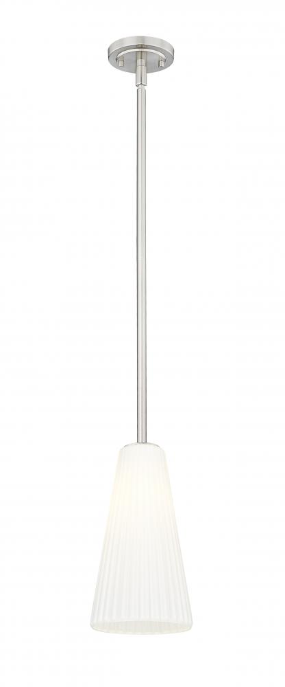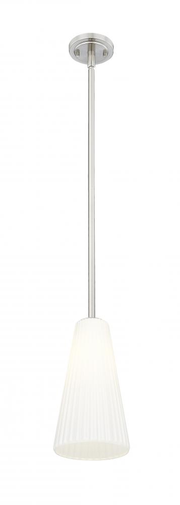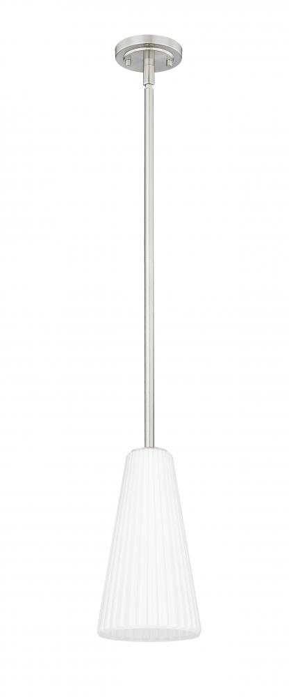 Infuse tailored sophisticated with the fluted white glass and elongated silhouette of this modern one-light pendant. Its distinctive design delivers the understated flair that complements a refined space with its brushed nickel finish. The pendant brings soothing sophistication alone or in series, blending beautifully in any room of your home.