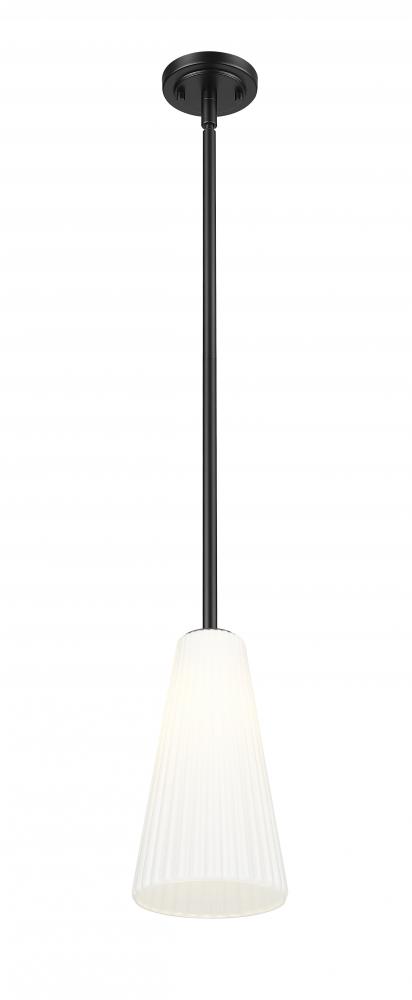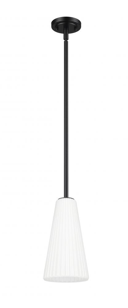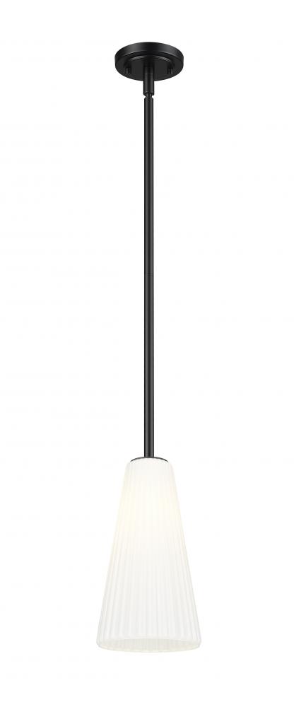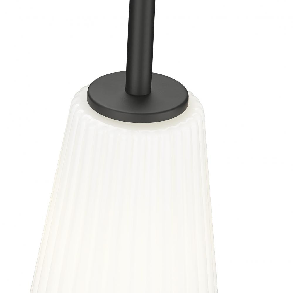 Enhance home decor with the movement and delicacy of fluted glass in this modern one-light pendant. A striking combination of matte black and frosted white, it features a flared silhouette and frosted glass and assures soft, diffused illumination over a kitchen, living area, or bedroom.