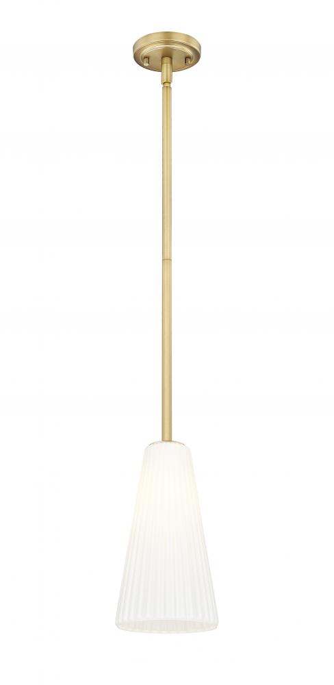 Embrace the elegant warmth of a sophisticated modern gold finish in this contemporary one-light pendant. Its flared silhouette is established with fluted, frosted glass that shades the light to deliver inviting, diffused illumination in any setting. Clean lines define the design, while delicate fluting adds the perfect touch of movement and fluidity.
