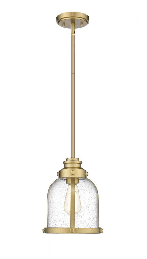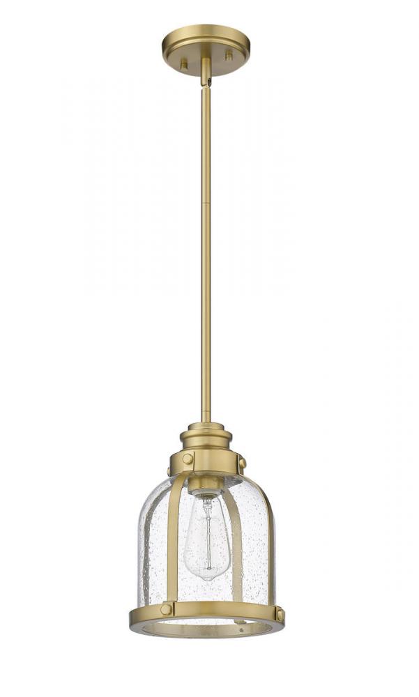 Indulge in a love of historical themed d?cor with this elegant one-light mini-pendant. A steel frame with heritage brass finishes offers a fitting host to a stylish domed shade crafted from romantic clear seedy glass.