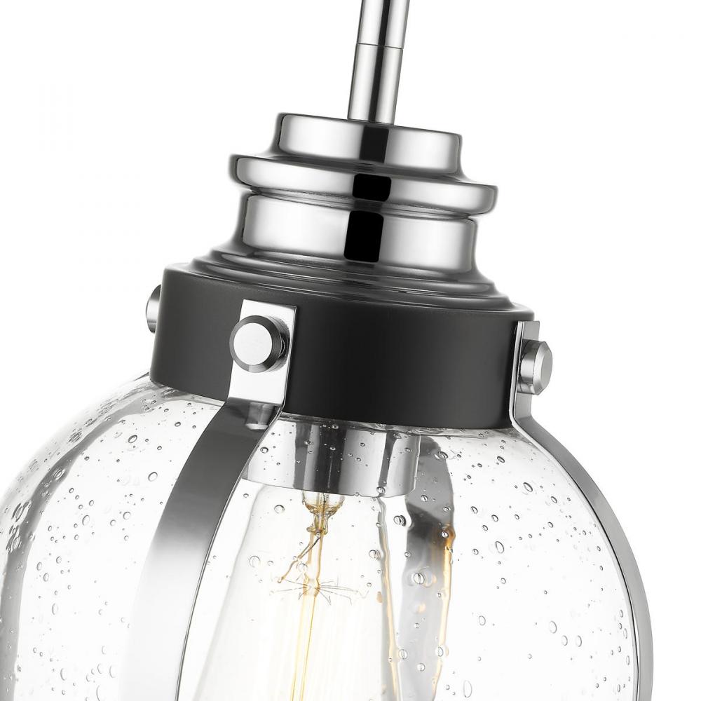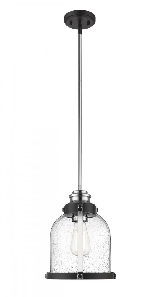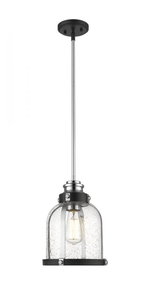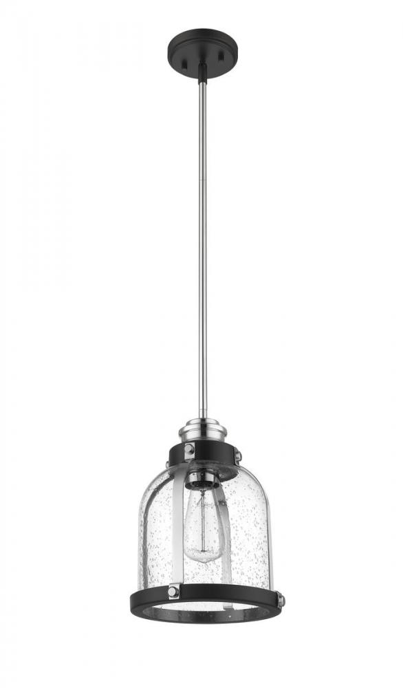 Indulge in a love of historical themed d?cor with this elegant one-light mini-pendant. A steel frame with two-tone matte black and chrome finishes offers a fitting host to a stylish domed shade crafted from romantic clear seedy glass.