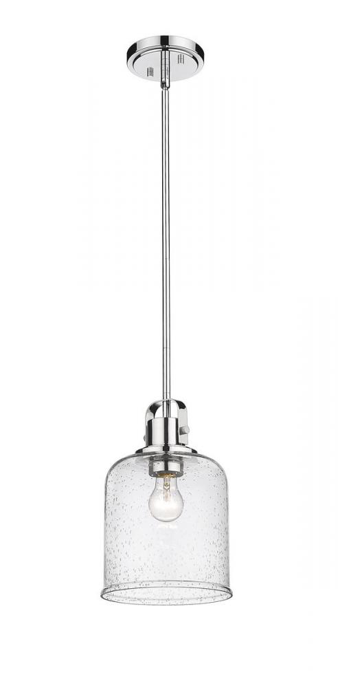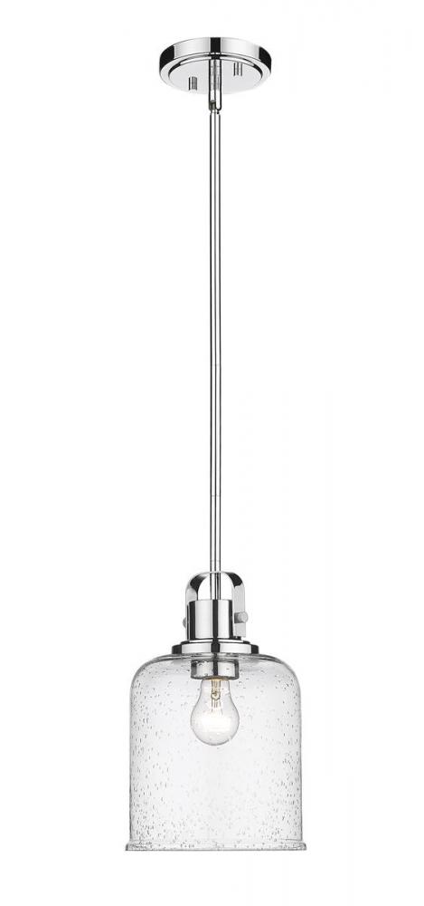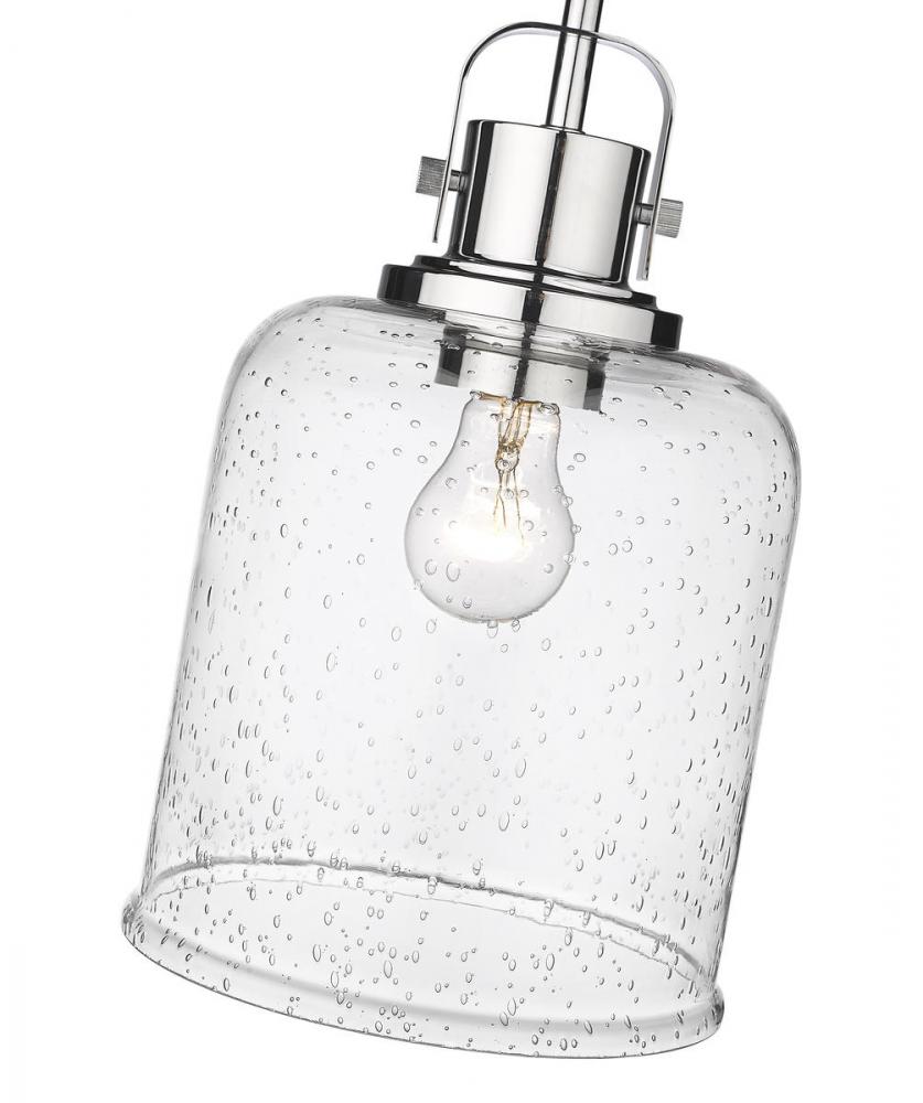 Bring an urban allure to your kitchen with a pendant light in chrome. This light provides a warm, modern glow behind the cylindrical clear seeded glass shade for an incredible ambiance.