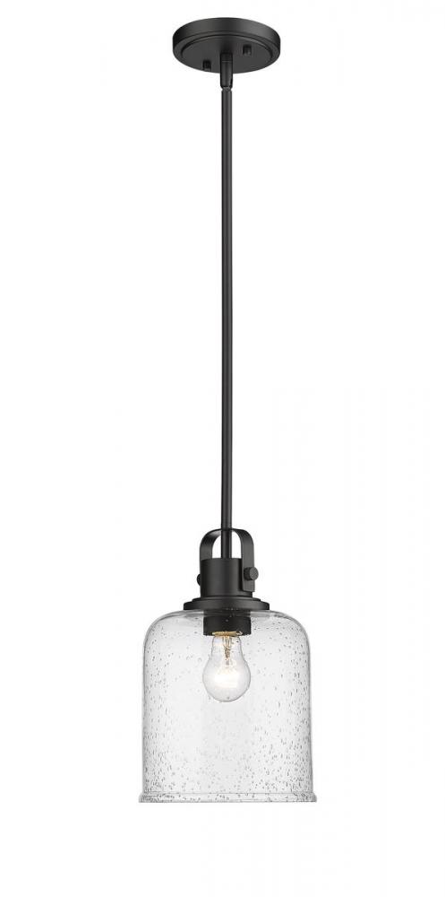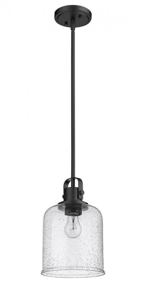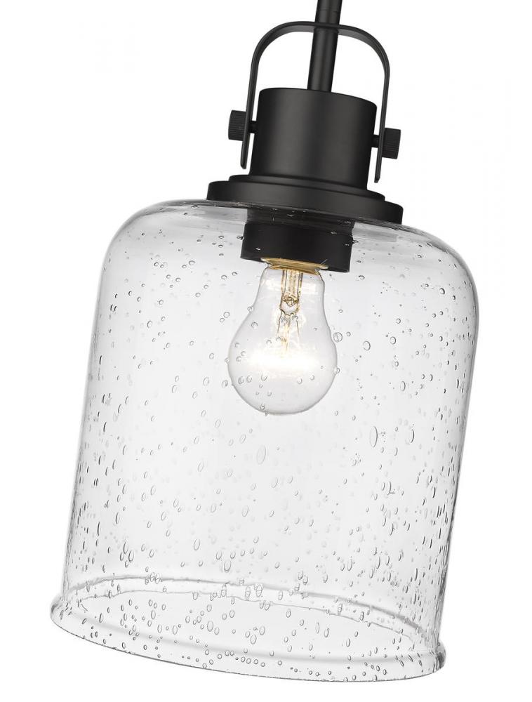 Bring an urban allure to your kitchen with a pendant light in matte black. This light provides a warm, modern glow behind the cylindrical clear seeded glass shade for an incredible ambiance.