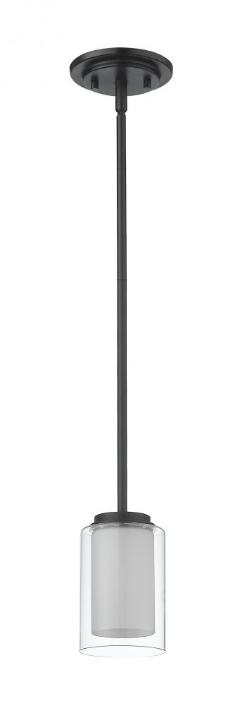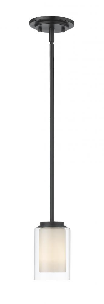 Give your dining room or bedroom a chic, sophisticated update. This beautiful, matte black mini pendant features a single glowing bulb beneath a delicate, glass shade thats matte opal on the inside and clear on the outside. An exquisite lighting option to highlight your refined sense of style.