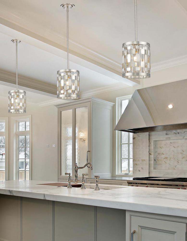 Contemporary metal shapes are formed together to create the orb and drum pendants of the Almet family. Almet has complimenting wall sconces and all fixtures are available in your choice of brushed nickel or bronze finishes.