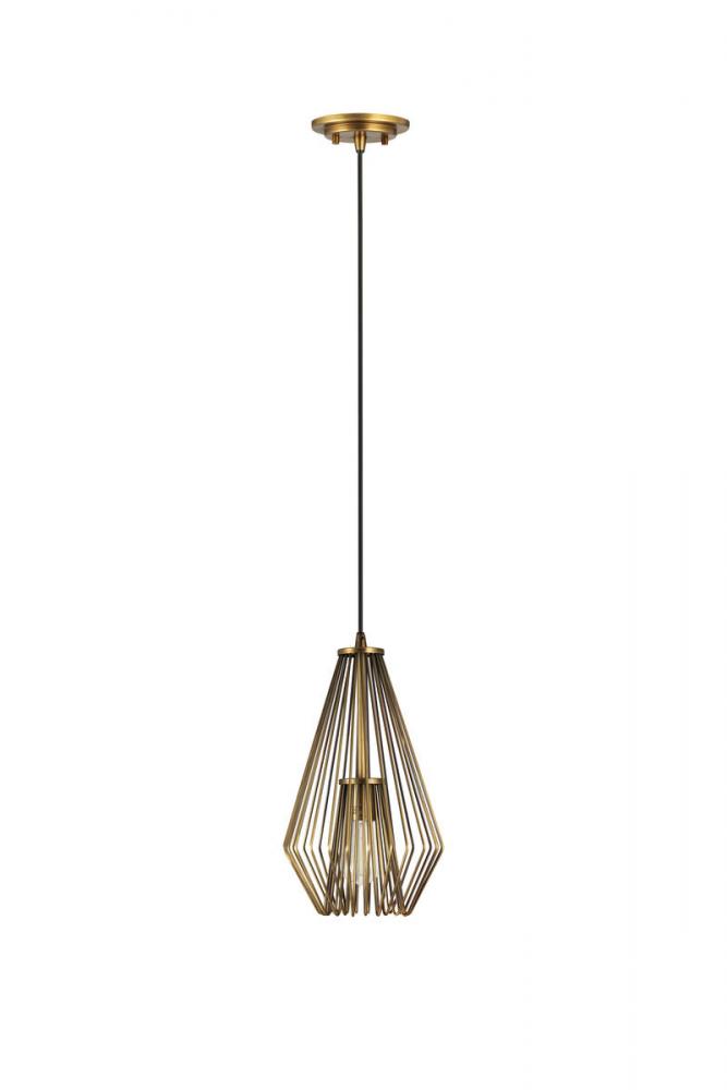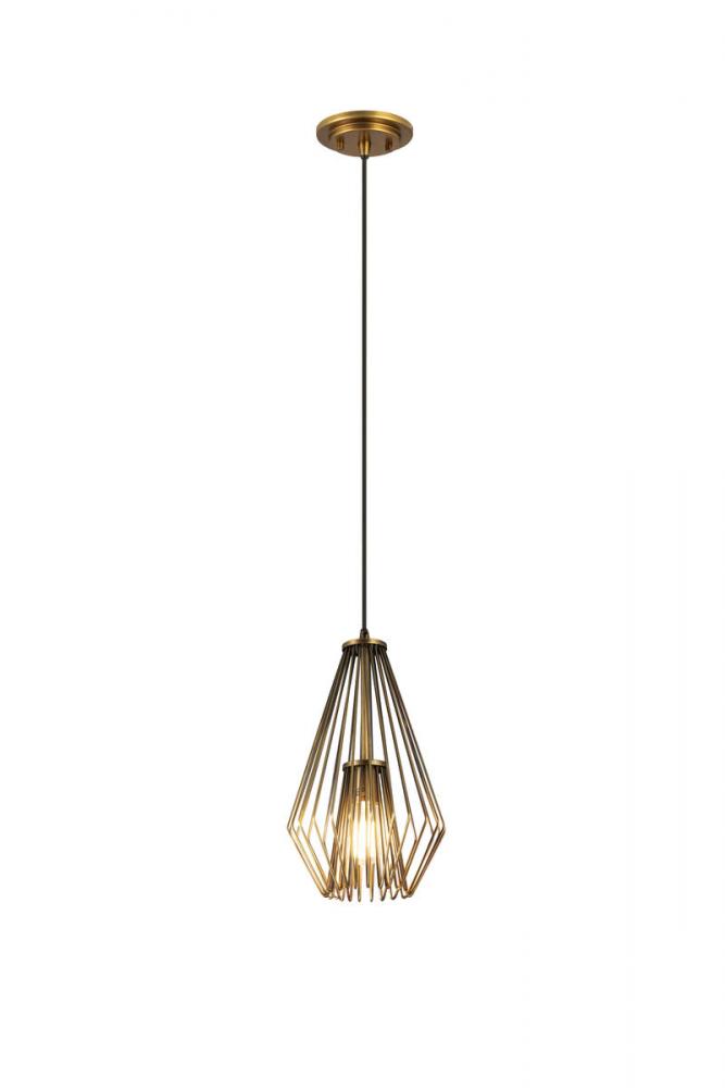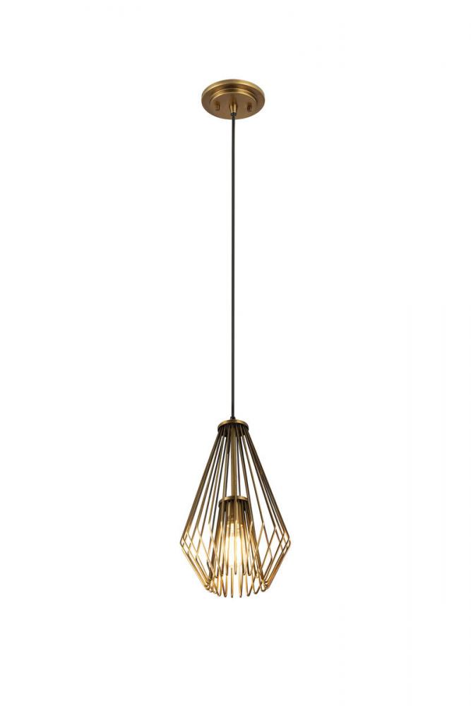Delivering a catchy, charming industrial motif, this single light mini pendant is ideal for a compact transitional space. Add targeted lighting to a nook or reading space with this cage-style, geometric light fashioned of rubbed brass finish steel.