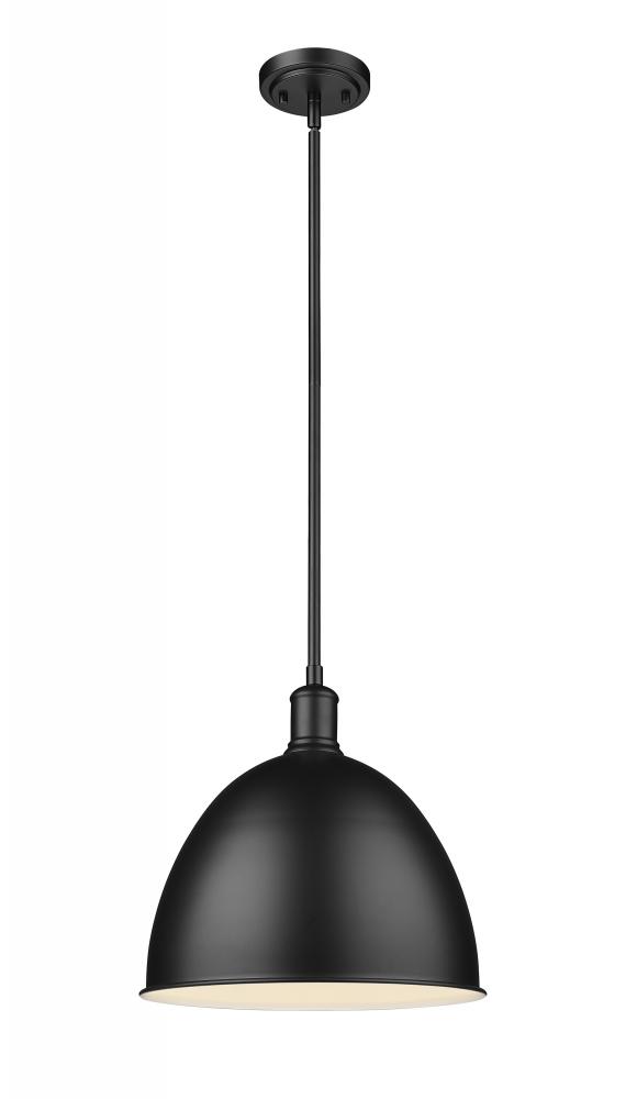 Give a gourmet kitchen a casual luxe look with this transitional modern farmhouse pendant. Designed with a minimalist, stark matte black finish across a bell-like iron shade, this single light pendant lends a restoration style flair, reminiscent of schoolhouse or industrial lighting fixtures. Suspend this sleek urban-inspired pendant over an island, providing ample light for prepping and baking or simply creating a more inviting communal area for the family to gather.