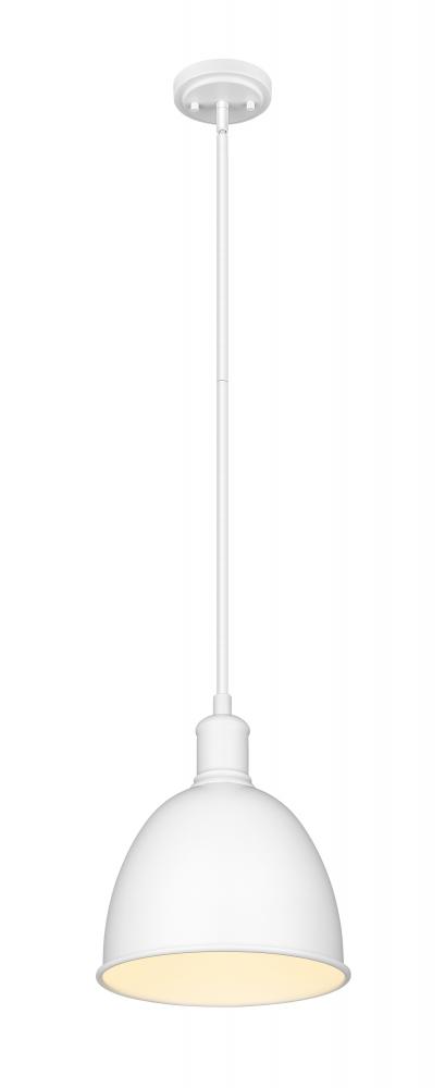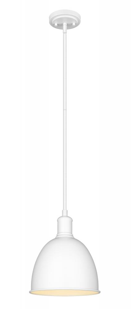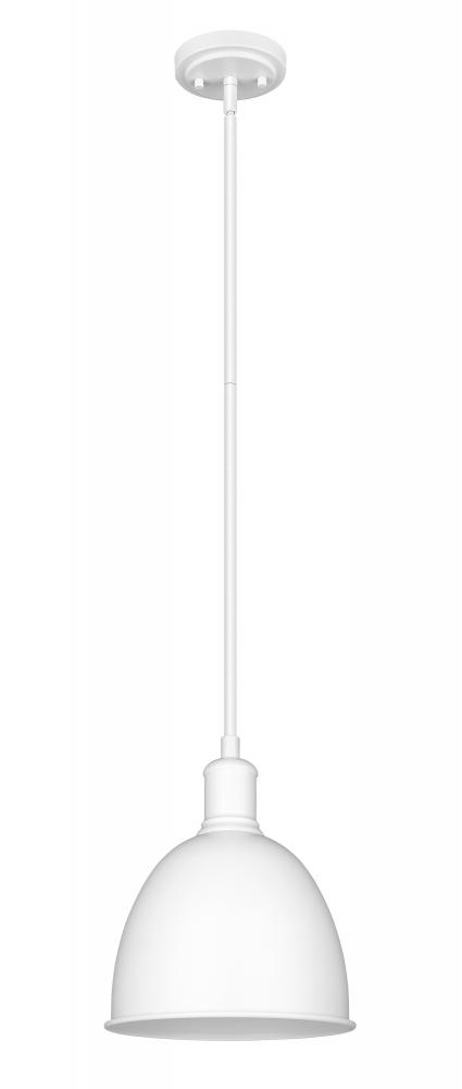Create ample lighting over a gourmet kitchen countertop or island with a series of these transitional modern farmhouse pendants. Designed with a minimal, crisp satin white finish iron shade that resembles a restored schoolhouse or industrial lighting fixture, this petite single light pendant lends a classically appointed urban-inspired flair. Sleek and simple with contoured lines, this charming pendant is perfect for illuminating kitchen islands where you prep, bake and entertain family and guests.