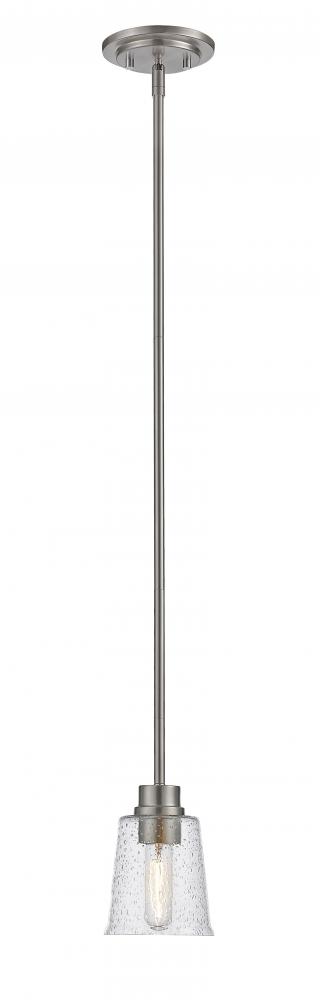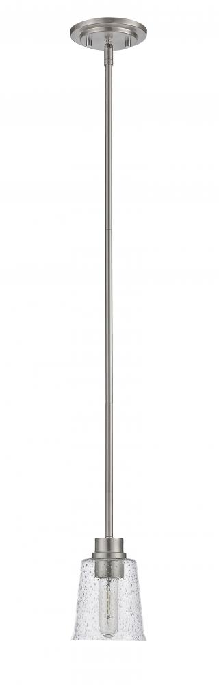 A stylized space counts on chic, design-forward accents, and this brushed nickel steel pendant light offers a fresh dose of beauty. With a romantic clear seedy glass shade and a steel frame, its extended drop adds both drama and energy to a contemporary or transitional living area.